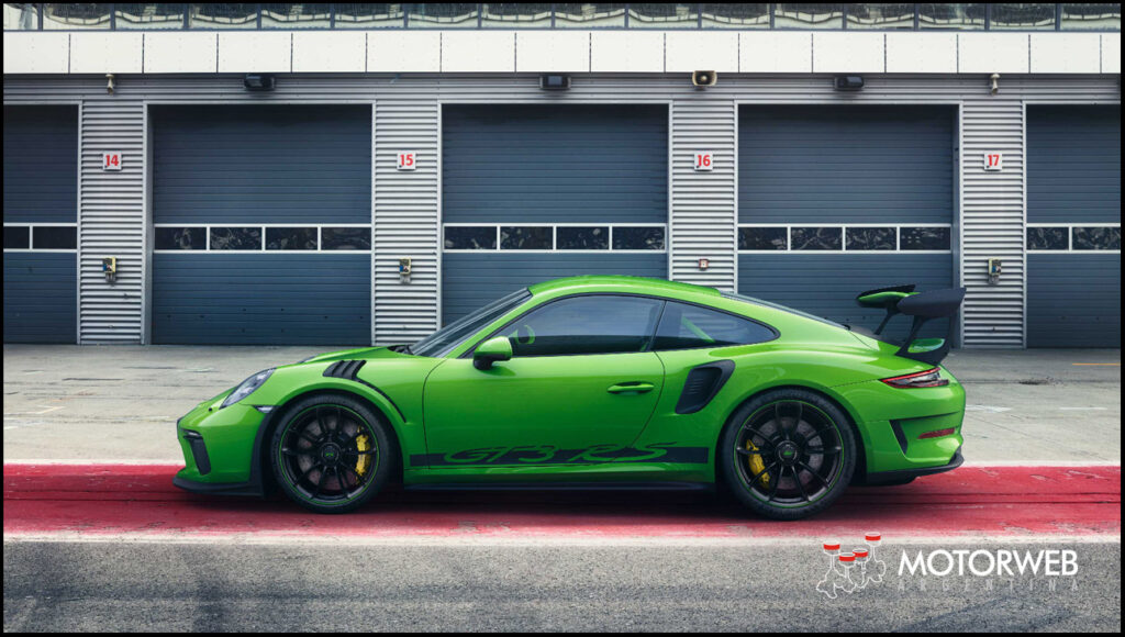 El motor aspirado de seis cilindros y cuatro litros del nuevo 911 GT3 RS empuja a este deportivo hasta límites superiores. Este motor bóxer tiene 20 caballos más que el del modelo anterior y el del 911 GT3. Puede girar hasta unas 9.000 rpm y combinado con una caja de cambios de doble embrague PDK de siete marchas especialmente calibrada, este propulsor garantizará altísimas prestaciones. Está equipado con llantas de aleación de 20 pulgadas con neumáticos deportivos de nuevo desarrollo y medidas 265/35 adelante, que mejoran la agilidad y precisión de la dirección, mientras que en el tren trasero, las llantas de 21 pulgadas con neumáticos 325/30 aumentan la capacidad de tracción.