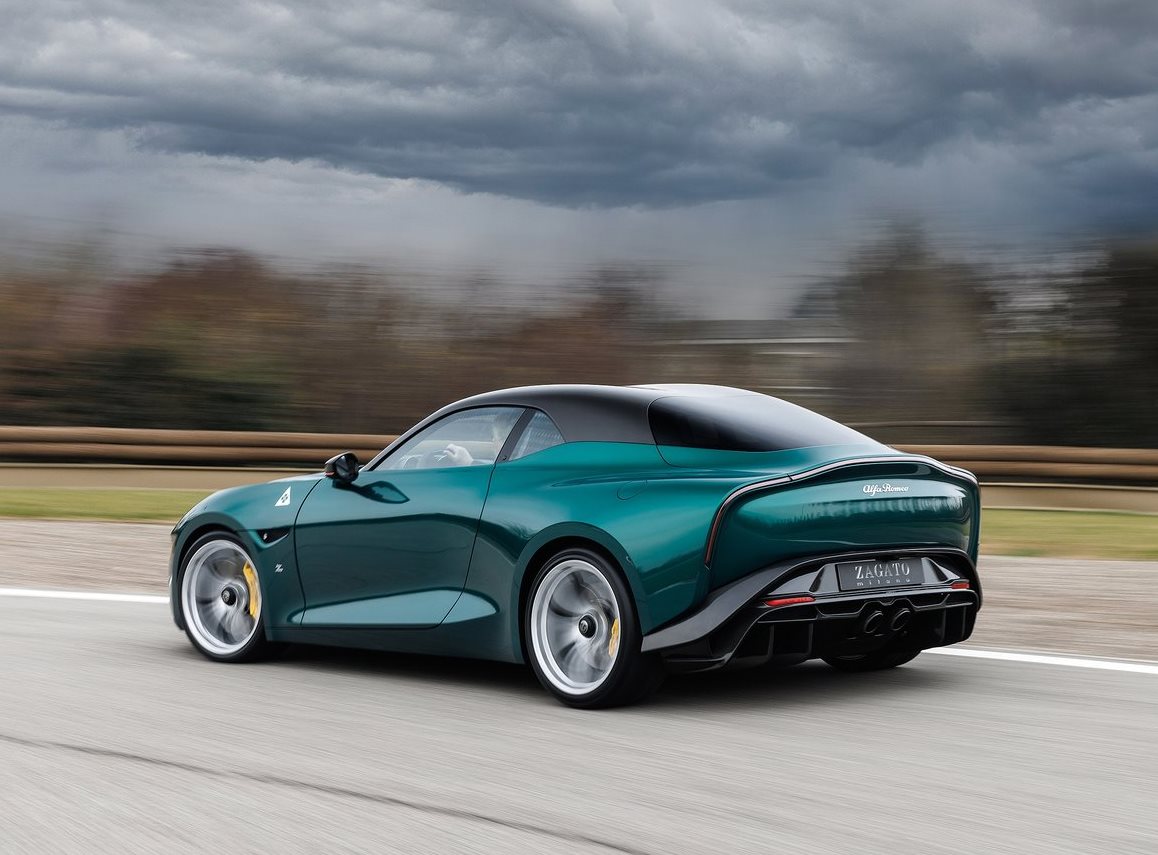 La carroceria Zagato además ofrece un largo de 4,40 metros (25 centímetros menos que los 4,65 del sedán) mientras que los voladizos son también más cortos. Además las trochas fueron ensanchadas para mejorar la dinámica.