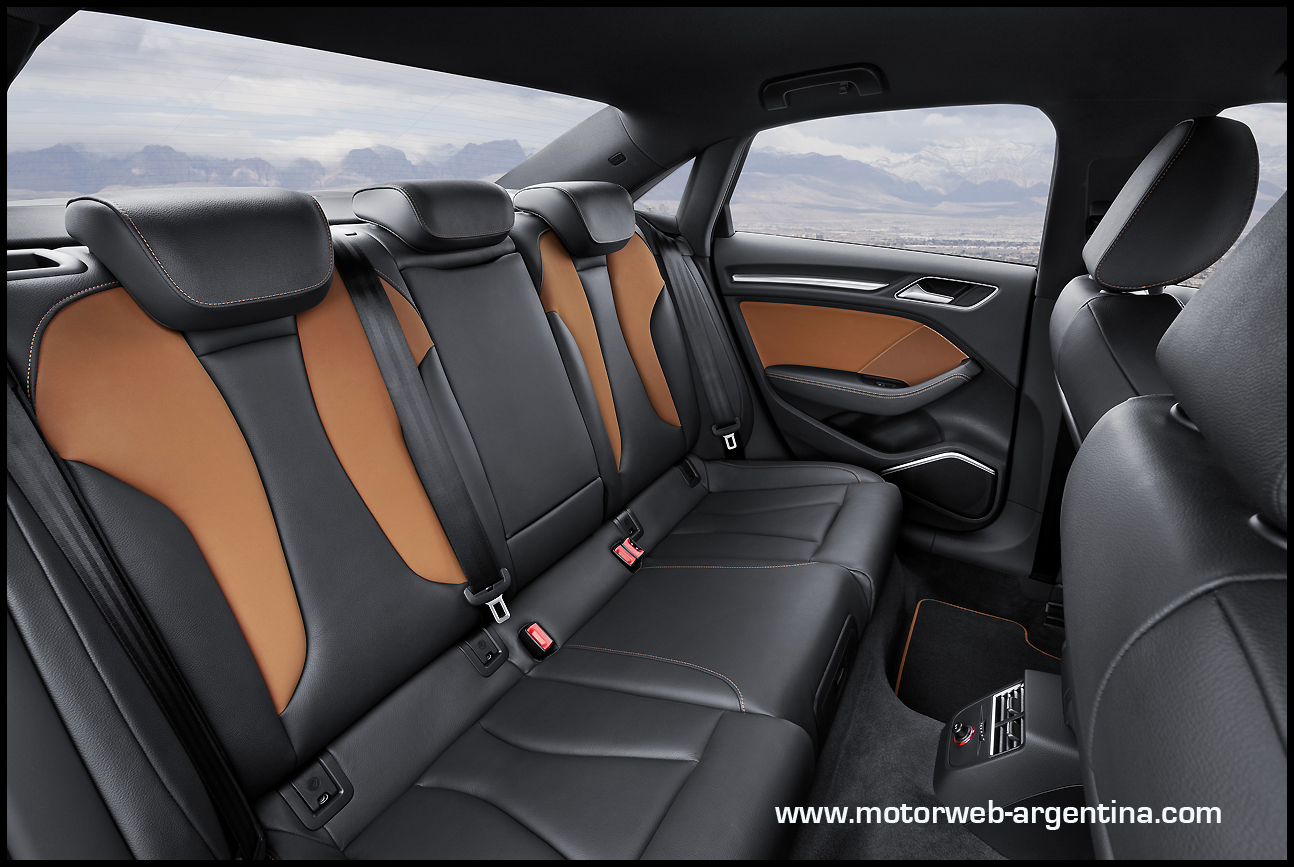 El baúl ofrece una ampla capacidad con 426 litros y las plazas traseras comodidad para tres adultos. El A3 Sedán arrancará en Europa con precios cercanos a los 25.000 Euros para las motorizaciones 1.4 TFSI de caja manual.