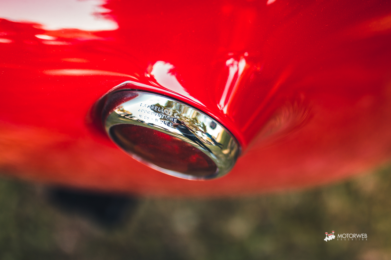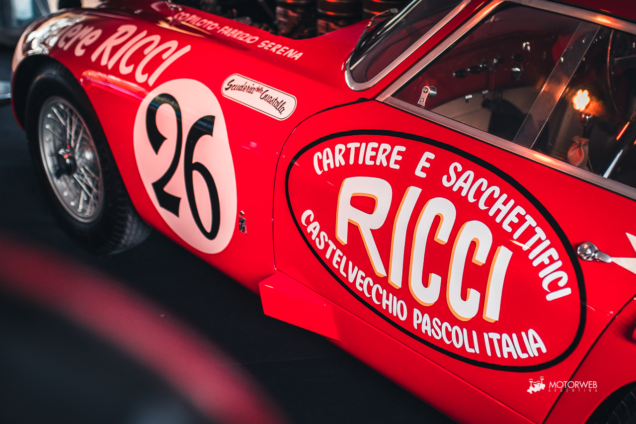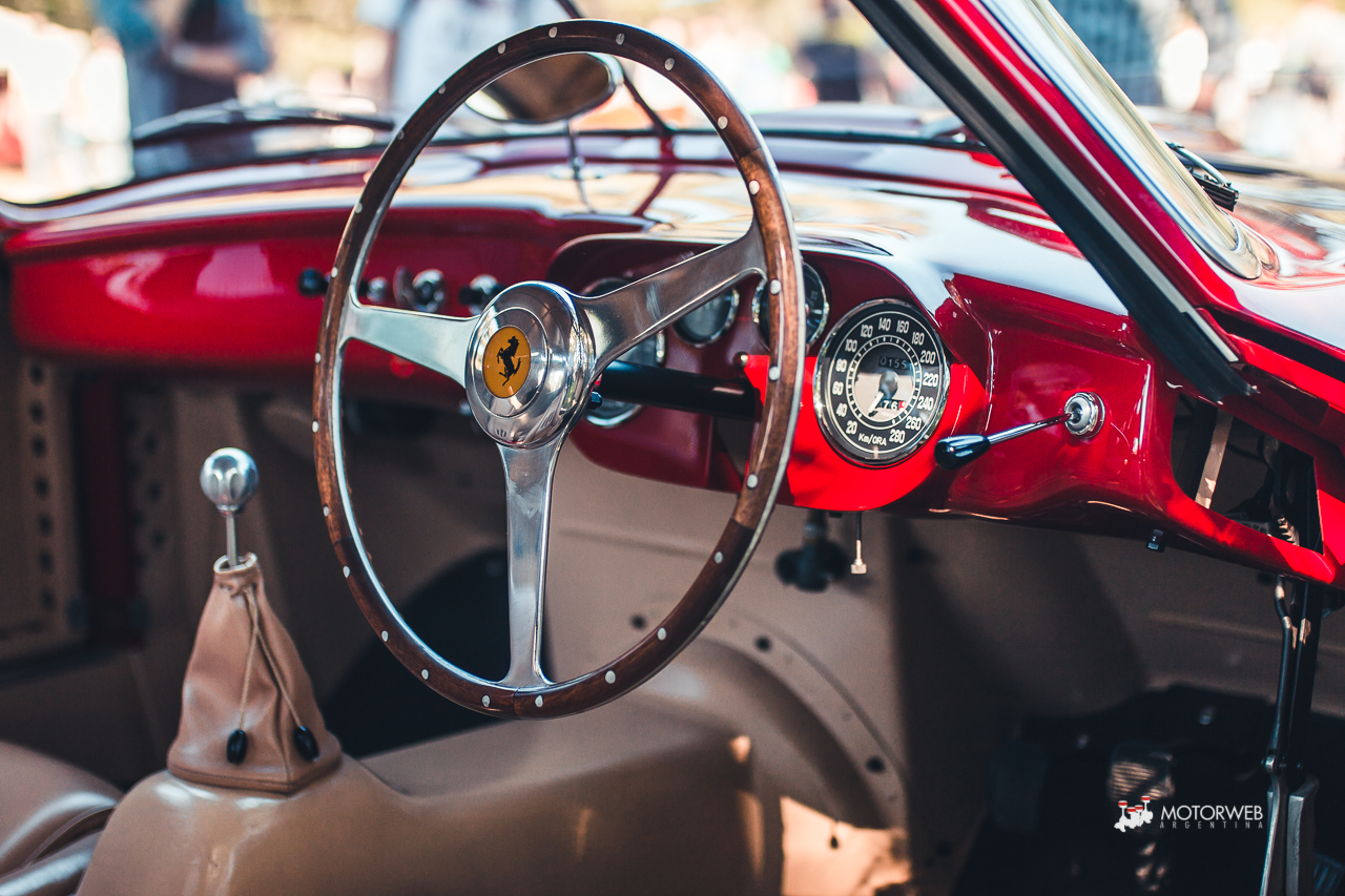El auto posee actualmente el livery con el cual compitió en aquella Carrera Panamericana de 1953, incluídos los stickers originales de la organización, se conserva en un estado impoluto por el cual vale la pena quedarse viendo largo rato. Leyendo un poco encontramos que este vehículo pasó por varias manos importantes, incluídas las del mandamás de la F1, el mismísimo Bernie Ecclestone, que la tuvo a mediados de los años ’90; además de curiosidades como haber sido descalificada de las 12 horas de Reims en 1953 debido a circular por la noche sin luces, o que la denominación 375 se debe a que, tras la descalificación en Reims, el auto regresa a fábrica para reemplazar el motor por el V12 4.5 y 340 CV que posee actualmente -más allá de que según registros, en 1969 tras un choque frontal en los Estados Unidos, el motor fuera reemplazado por un V8 y el auto aparezca en un desarmadero-
