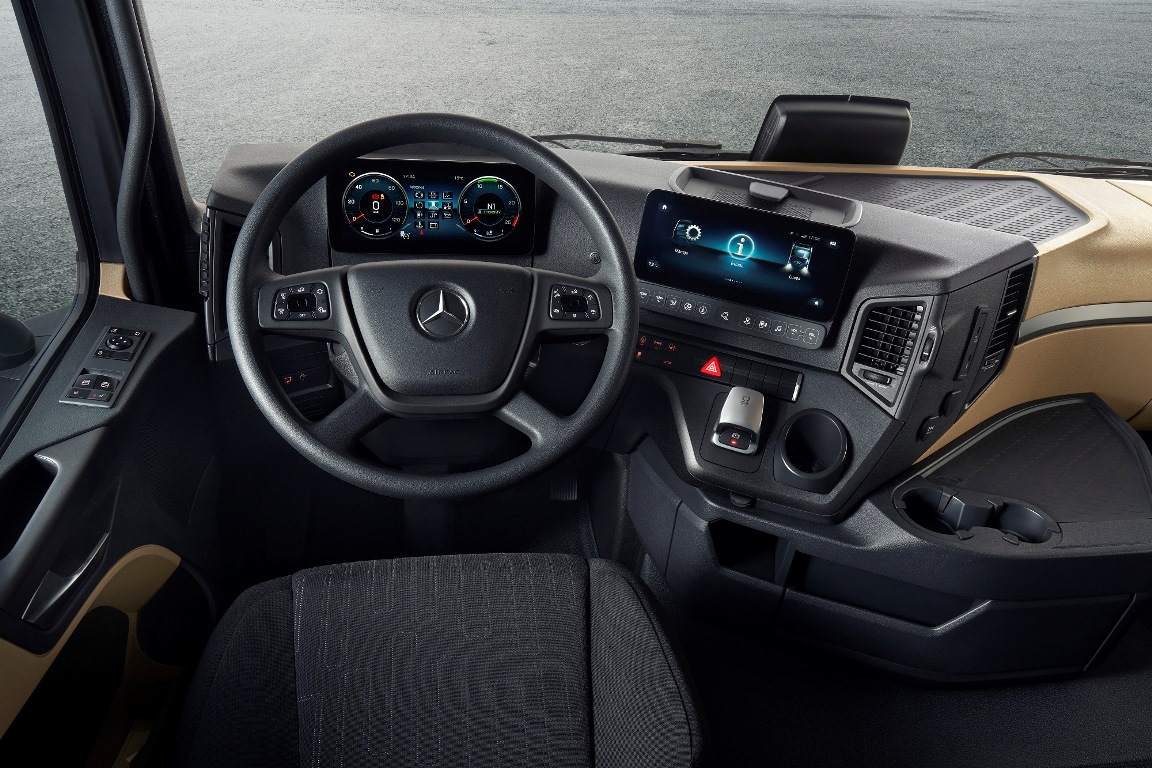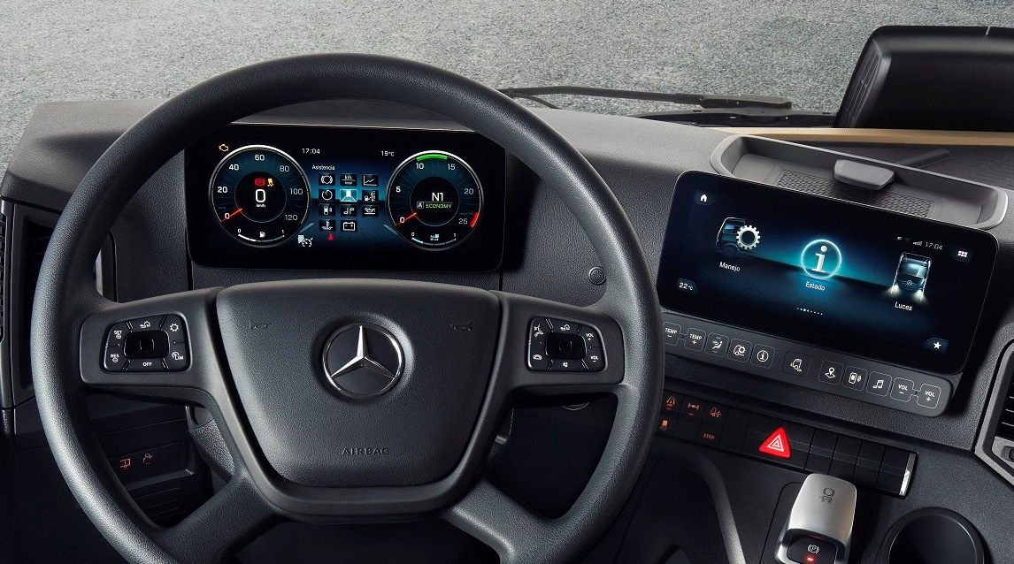 Tal y como un auto, el Actros conforma su tablero e instrumental con dos pantallas, en ambos casos direccionadas hacia el conductor. Las mismas pueden ser operadas desde el volante. Las teclas del lado izquierdo toman control del tablero, y las de el derecho la pantalla secundaria, en la que se puede manejar la radio, como así también la climatización.