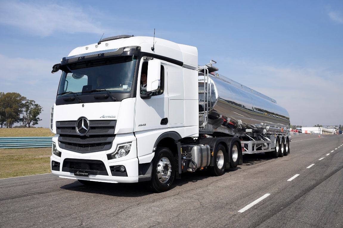 Los Actros comercializados en Argentina ofrecen control de velocidad crucero con regulación de distancia, sistema de detección de cambio de carril involuntario y sistema de alerta por