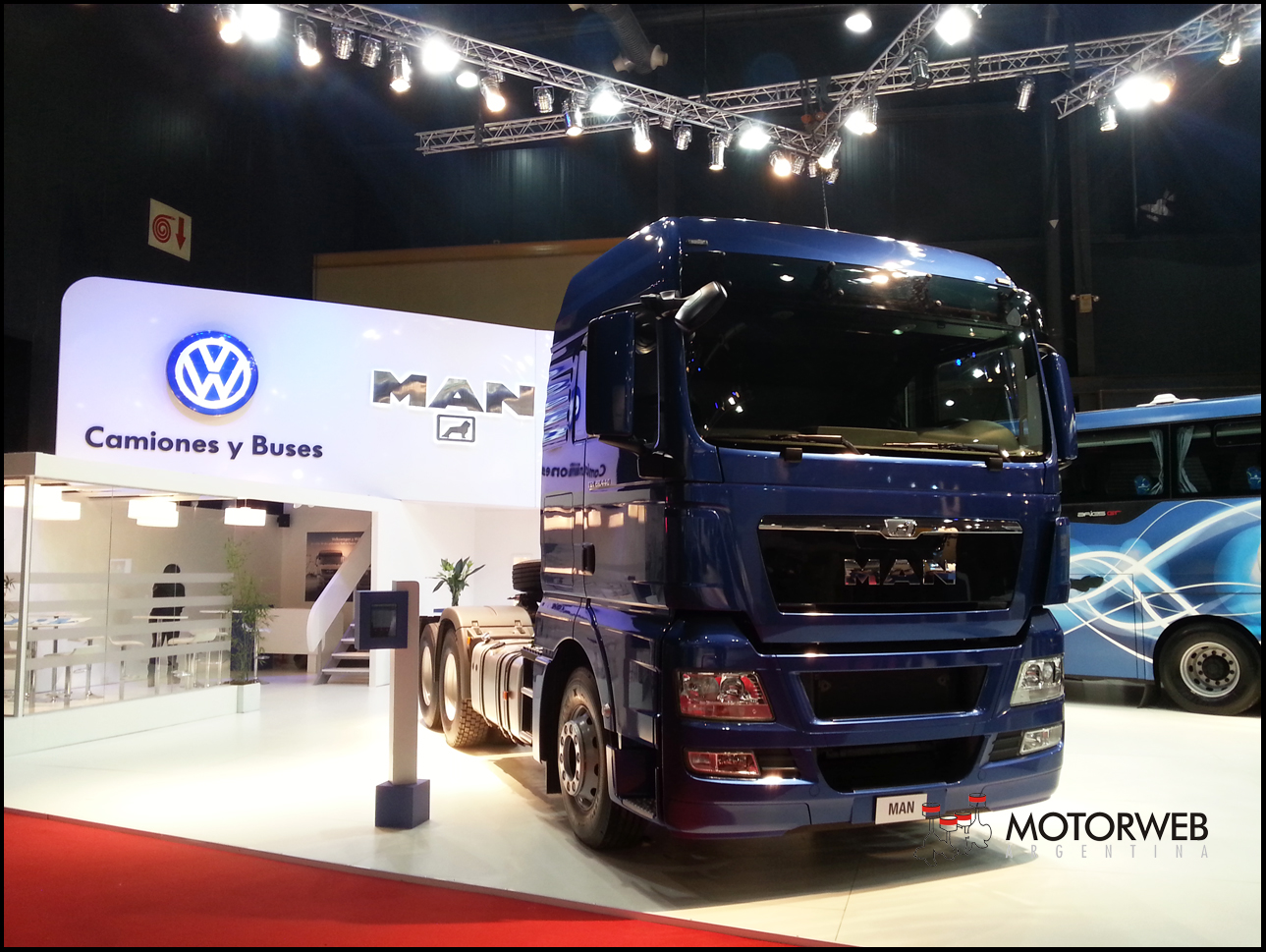 Volkswagen Argentina Camiones y Buses exhibe en exclusiva en el Salón Internacional del Automóvil de Buenos Aires el modelo MAN TGX 28.440 6X2, de fabricación Mercosur, equipado con motorización MAN D26, de 6 cilindros y 12,4 litros, sistemas de inyección Common Rail y potencia de 440 cv.