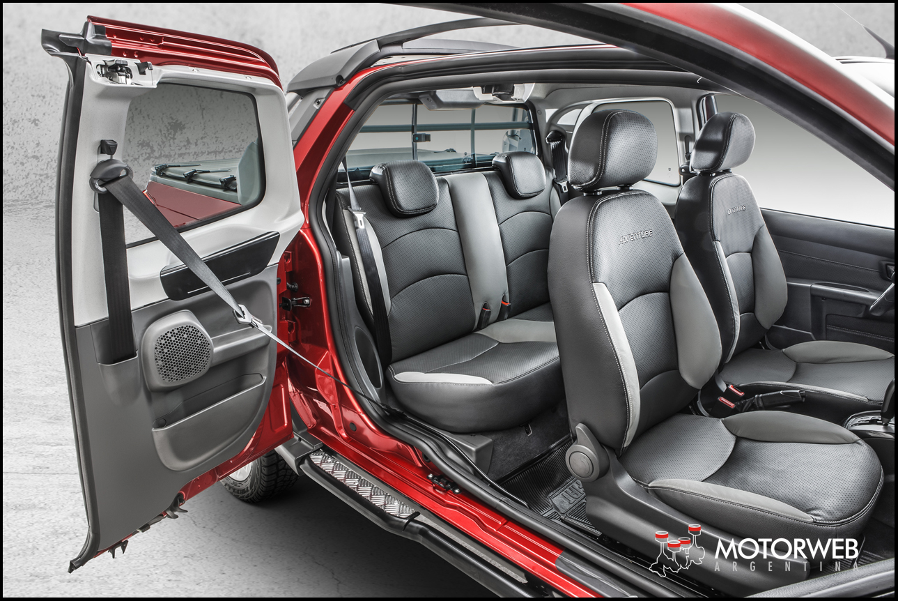 La Fiat Strada, líder en ventas en su categoría desde hace 3 años, presenta como novedad la tercera puerta en las versiones Doble Cabina, una esperada innovación que brinda un acceso más confortable a las plazas traseras. Esta inédita solución técnica fue desarrollada por el centro de Ingeniería de Fiat en Brasil, e incluye una puerta reversa en el lado derecho con una manija especial de doble activación, eliminando totalmente la columna central, y ampliando en un 100% el espacio de ingreso al asiento trasero.