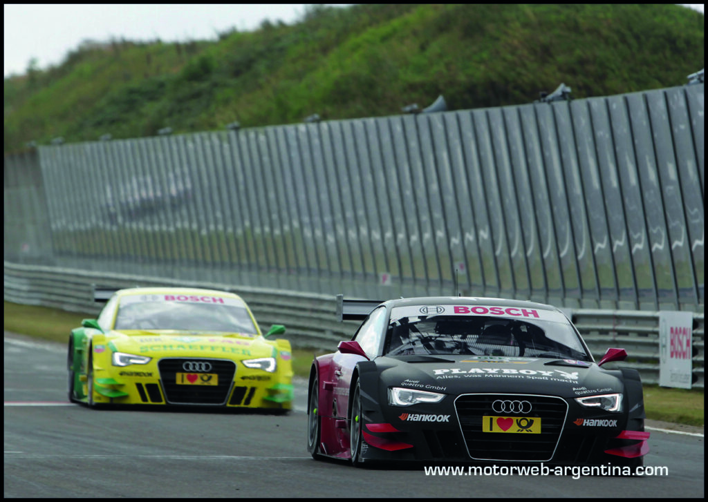 En Zandoort, Holanda, los tres Audi A5 DTM lograron por primera vez en la temporada 2012 un podio completo para la marca. Edoardo Mortara (Audi A5 DTM Playboy) triunfó frente a sus dos compañeros de marca Mike Rockenfeller (Audi A5 DTM Schaeffler) y Mattias Ekström (Red Bull Audi A5 DTM) en una dificil carrera bajo la lluvia intermitente que requirió en varias oportunidades cambiar los neumáticos y obligó a los pilotos a conducir en condiciones extremas. Como si el podio completo Audi hubiera sido poco, otros dos Audi A5 salieron en cuarto y quinto puesto.