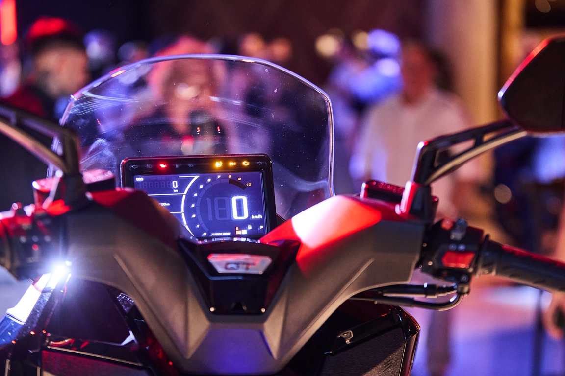 Su equipamiento incorpora parabrisas con regulación eléctrica, puños calefactables, asiento amplio a 785 mm con respaldo lumbar ajustable, control de crucero, freno de mano, sistema keyless, iluminación Full LED y un espacio bajo el asiento apto para un casco integral. Suma además un compartimento con puerto USB-C para carga rápida de celular. En conectividad, presenta un tablero digital con sistema Noodoe, que permite vincular el smartphone y gestionar funciones de navegación.