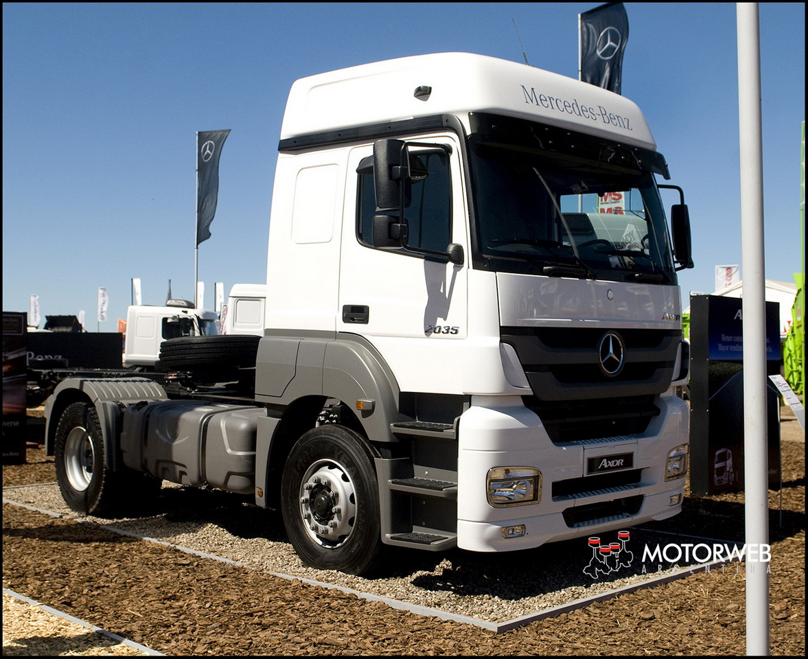 Por el lado de los camiones, el nuevo Axor 2035S/36 Eco cambia su transmisión incorporando la caja de cambios MB G281-12/14,93-1,00 automatizada y el eje trasero MB HL6/20DCS13 rel. i=2,846:1 sin reducción en los cubos de rueda. Esta conjunción aumenta considerablemente el rendimiento mecánico de la transmisión optimizando el consumo de combustible, simultáneamente mejora la calidad de conducción el confort de chofer y por lo tanto la seguridad en el tránsito.
