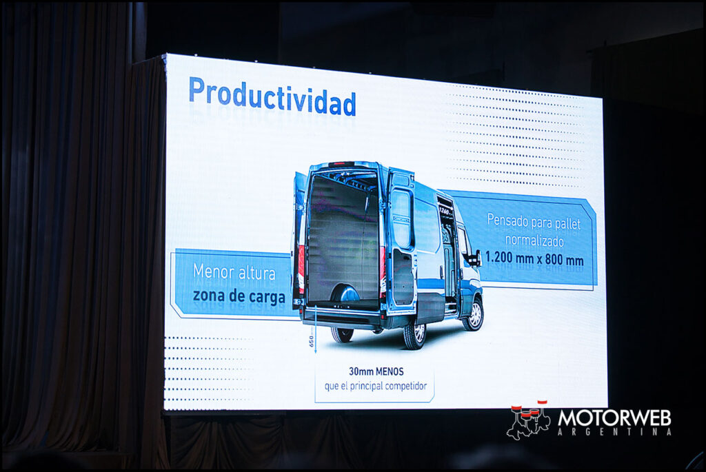 Gracias a su nuevo chasis, que sigue siendo de largueros estructurales (como una pickup grande) contrariamente a muchos de su rivales que usan carrocerías monocasco (como un auto), la capacidad de carga es de unos 1.900 Kilos. SU volumen carga es de 10,8 metros cúbicos y a las 3,5 toneladas de Peso Bruto Total (PBT), se les suman otras 3,5 toneladas de capacidad de tracción.