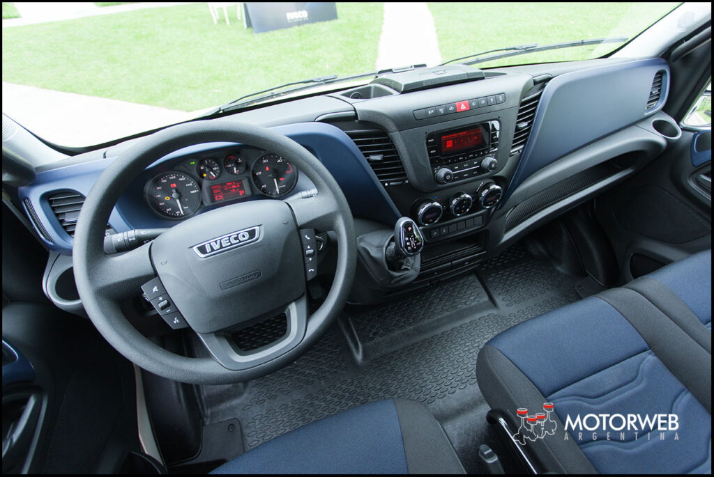 El interior del Iveco Hi-Matic muestra un nivel diferencial respecto a sus competidores de franja en nuestro país. Desde su diseño, que cada vez se asemeja mas al de un auto, pasando por elementos de confort como el climatizador automático, el control de velocidad crucero, el asiento conductor con suspensión, retrovisores de accionamiento eléctrico y calefaccionados (desempañador y descongelamiento), y a modo opcional, la aplicación Daily Business que se descarga en un smartphone o tablet y permite navegación multimedia, gestión del vehículo y monitoreo del estilo de conducción, consumos, etc. Esto es compatible con dispositivos con Android o Apple.