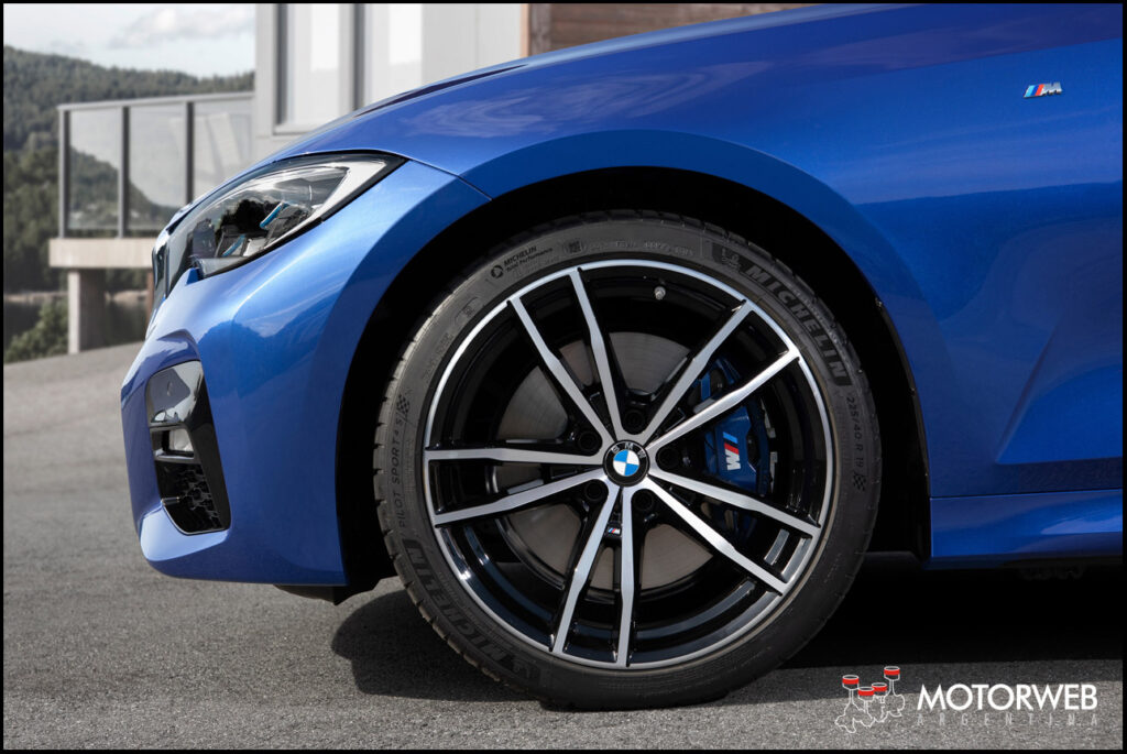 La suspensión M Sport (con una reducción de 10 milímetros en la altura) se une a la lista de opciones junto con la suspensión M Adaptativa con control electrónico de los amortiguadores. Las dos variantes de suspensión opcional también traen a los clientes beneficios de la dirección deportiva variable, que en esta nueva versión promete ofrecer sensaciones aún más directas y precisas. También existe como opcional los frenos M Sport con cálipers fijos de cuatro pistones para el eje delantero. Son cálipers de color azul que muestran el logotipo M. El diferencial M Sport está disponible para el BMW 330i y el BMW 330d en conjunto con la suspensión M Sport o la suspensión M Adaptativa. Aquí el control electrónico y la función de bloqueo variable y completo en el diferencial trasero, mejorarían significativamente la tracción, la agilidad, la estabilidad y la dinámica en curvas según comentaron en la marca bávara.