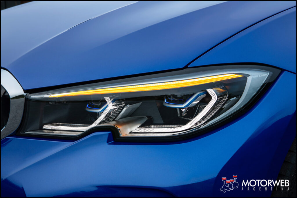 La gran parrilla doble en forma de riñón de BMW y los faros delanteros son temas dominantes al frente del modelo. Los faros completamente LED son de serie, mientras que los faros LED con características extendidas y faros LED adaptativos con BMW Laserlight para un haz de luces altas sin deslumbramiento (con un alcance de alrededor de 530 metros) están disponibles como opcional.