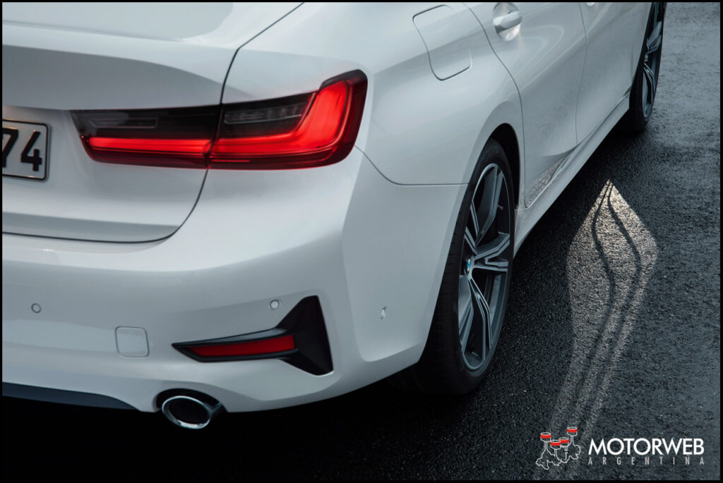 El nuevo lenguaje de diseño de BMW muestra un carácter moderno y dinámico en este nuevo BMW Serie 3 Sedán. Es 85 milímetros más largo que su predecesor (4,709 mm), 16 milímetros más ancho (1,827 mm) y sólo 1 mm más alto (1,442 milímetros). La distancia entre ejes de 41 milímetros más larga (2,851 mm) y las trochas son más anchas (adelante: +43 mm, atrás: +21 mm).