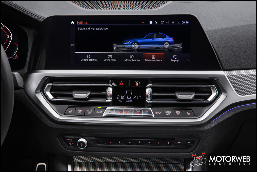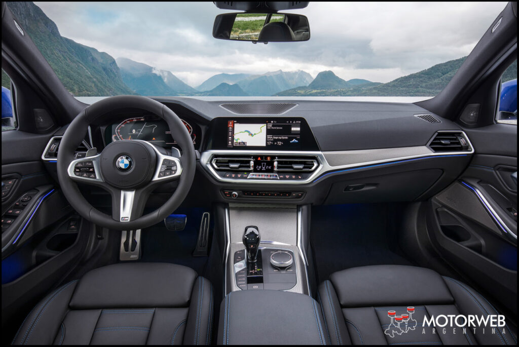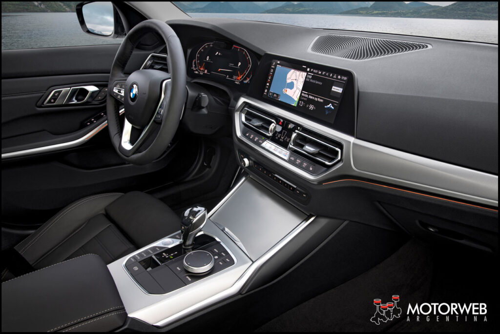 El nuevo lenguaje de diseño de la marca también trae una disposición clara de las superficies al interior del nuevo BMW Serie 3 Sedán. Esto acentúa el espacio del habitáculo, junto con la plancha apenas girada, orientada hacía en el conductor. La nueva agrupación de pantallas de la pantalla de control y del cuadro de instrumentos, la consola central alta, así como el acabado del revestimiento de la puerta, crean una sensación de espacio amplio y deportivo a la vez.