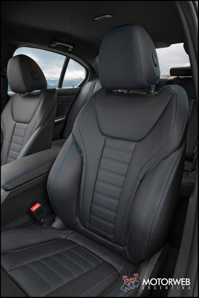 Por supuesto al tratarse de un auto premium, el nuevo BMW Serie 3 Sedán puede pedirse con una variedad innovadora de opciones. Las líneas de equipamiento Advantage, Sport Line, Luxury Line y M Sport ayudan a dar una individualización dirigida. Agregado a esto, hay volantes y molduras interiores de nuevo diseño, molduras interiores modelo Vernasca y BMW Individual de piel Merino, panel de instrumentos en Sensatec y un panel de instrumentos BMW Individual cubierto en cuero, más control de clima automático de tres zonas, calefacción auxiliar para zonas extra-frías y la telefonía opcional con carga inalámbrica, entre lo más destacable. El parabrisas está fabricado de serie con vidrio acústico, que también está disponible como una opción para las ventanillas laterales. El techo de cristal opcional tiene una superficie transparente 100 milímetros más larga que el modelo anterior. Y la iluminación ambiental opcional es configurable en colores, mientras que el sistema de sonido envolvente Harman Kardon se encarga de ofrecer la experiencia del audio hi-end.