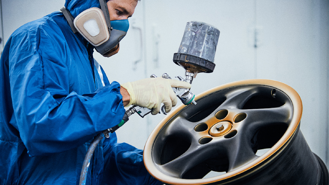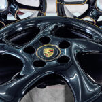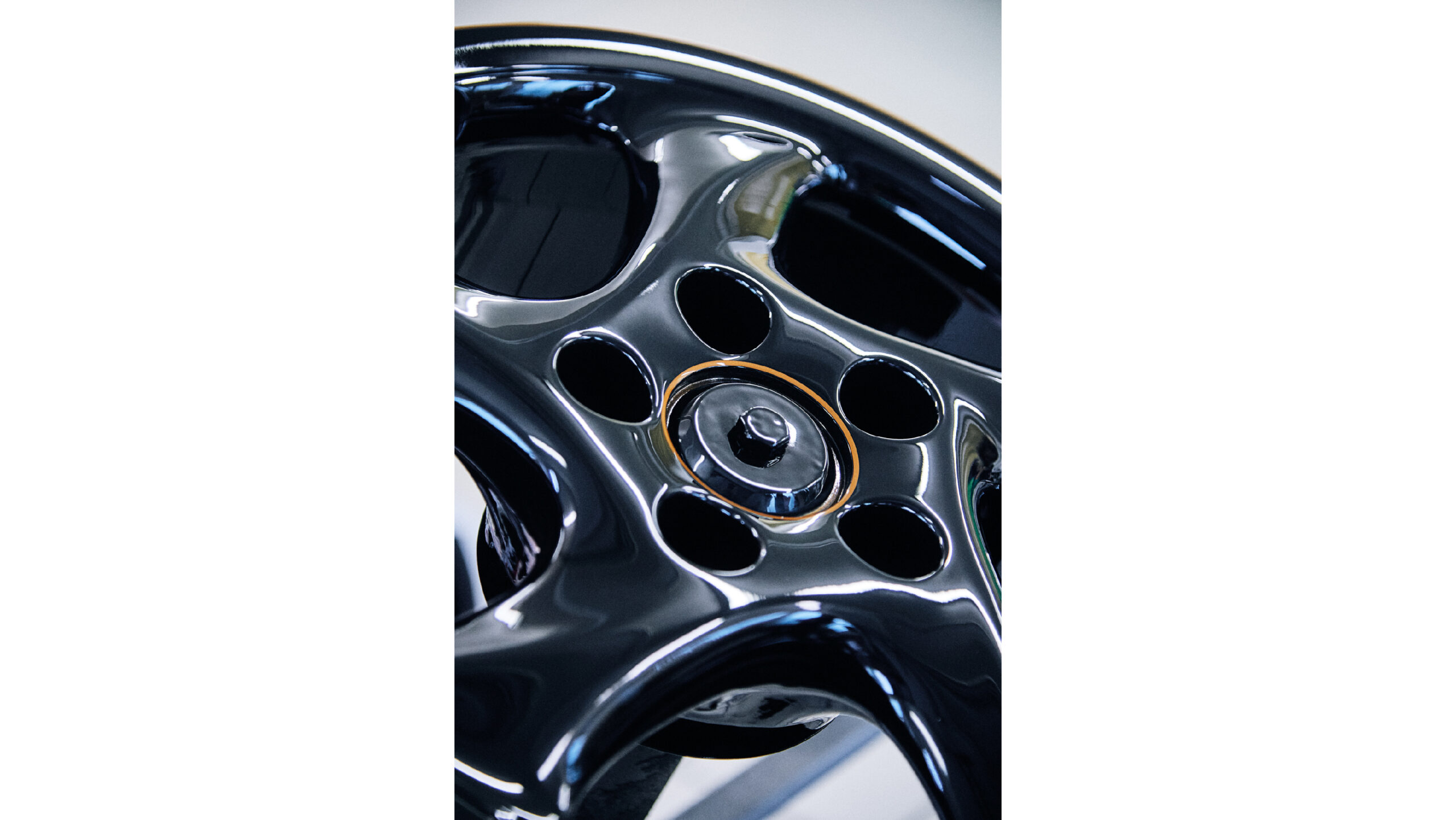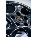 Las llantas de aleación de aluminio han sido pintadas en negro brillante, y se les ha aplicado un grabado laser en color dorado a los aros de las mismas.