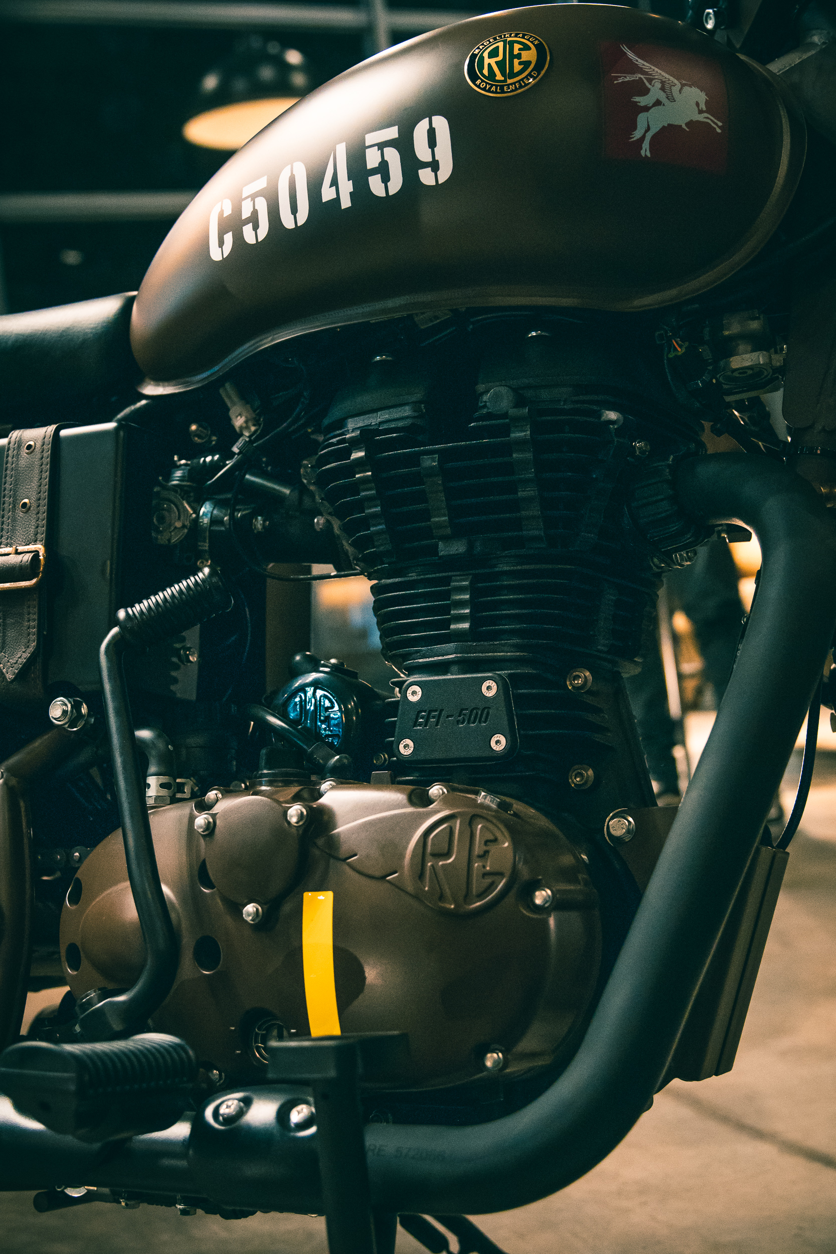 Basada en la Classic 500 que ya conocemos, pero inspirada en las WD/RE 125 «Flying Flea» que fueron gran parte del campo de batalla en la Segunda Guerra Mundial; los principales cambios en esta moto se destacan en el color, ya que han eliminado casi todos los cromados -sólo quedan en esta terminación un par de piezas-, y casi la totalidad de la moto está pintada en el color mate que elija el cliente -sólo disponible en verde y marrón-. También agrega alforjas laterales con el logo del escuadrón Pegasus -que también se encuentra pintado en el tanque de nafta, junto con la insignia de Royal Enfield para la época y al número de serie de la moto en color blanco-, las cuales son desmontables para permitirle a un acompañante utilizar el sillín. Por supuesto que el famoso slogan de la marca inglesa «Made like a gun», heredado de aquellos tiempos, aparece en este caso grabado en la tapa de la batería, como así también en la insignia del tanque.