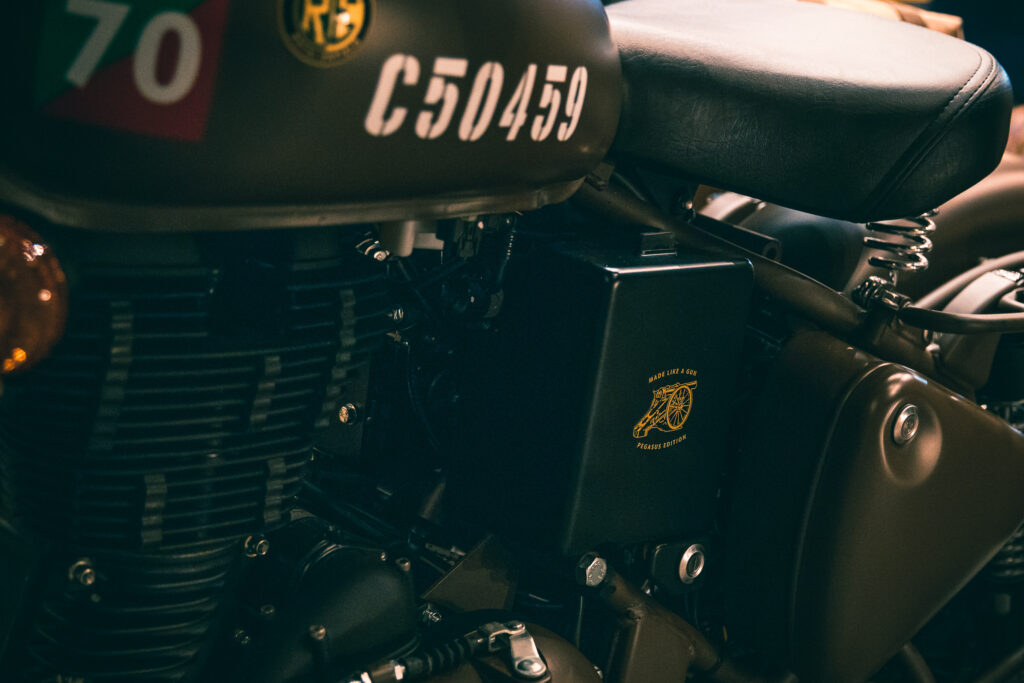 Cabe aclarar que para la realización de esta edición limitada, Royal Enfield solicitó al ejército un permiso especial para la utilización del logotipo del famoso escuadrón de paracaidistas que arrojaba sus motocicletas desde aviones al campo de batalla.