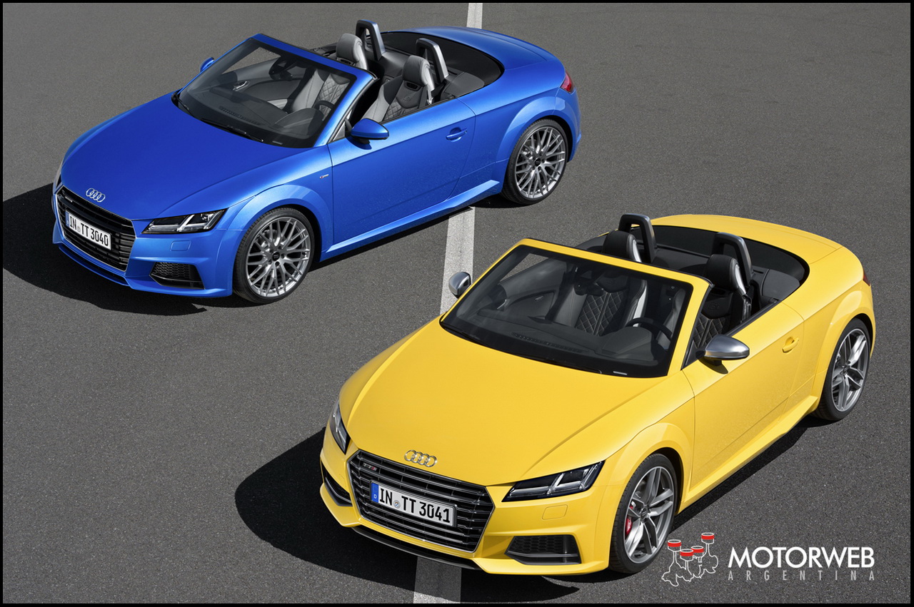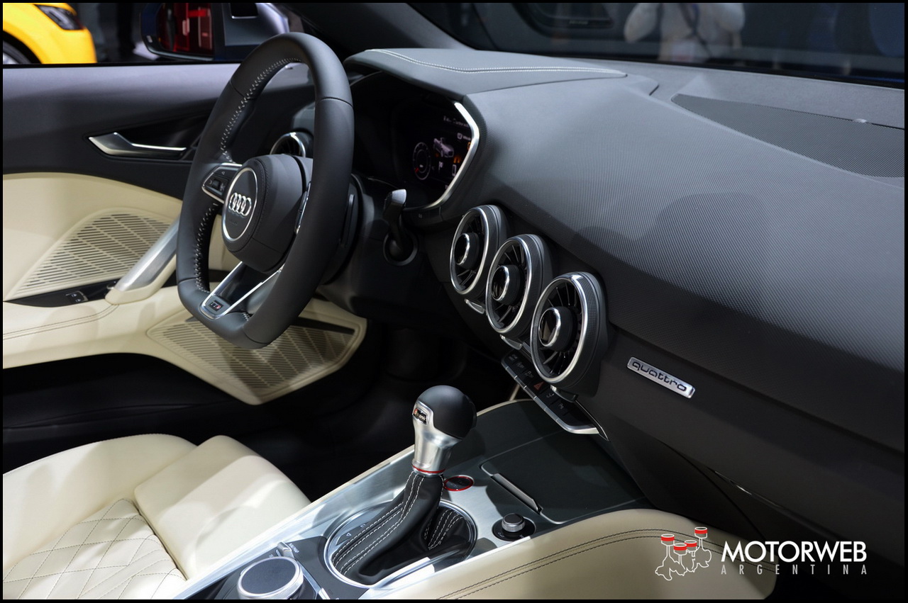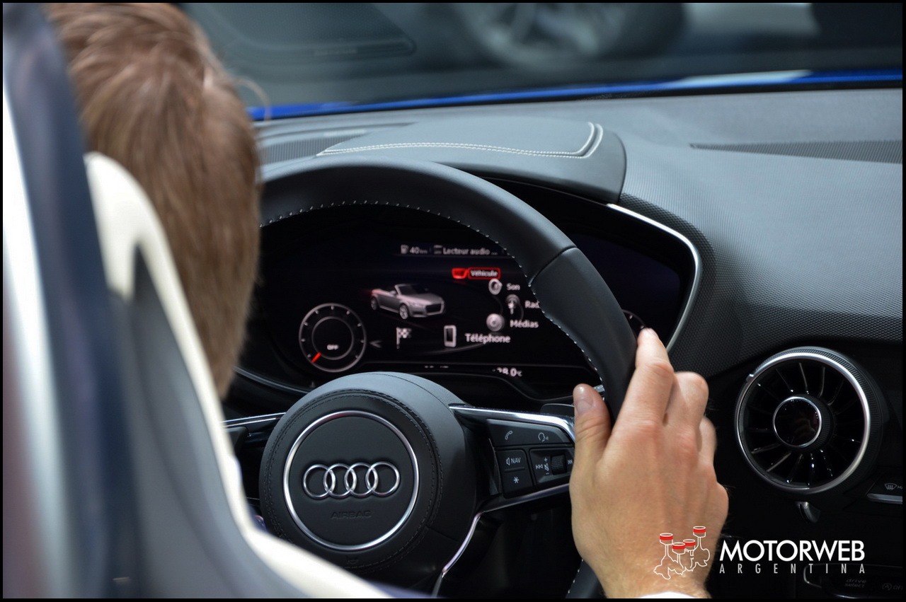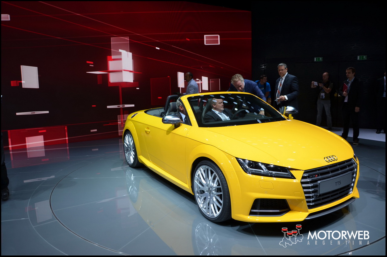 Ademas, la marca de los anillos mostró su ultimo lanzamiento, las versiones Roadster del nuevo TT. Se trata del TT y el TTS, las dos derivaciones del nuevo descapotable de Audi. La tercera generación del TT incorpora el «virtual cockpit», reemplazando el tablero de instrumentos por una gran pantalla de LED de 12.3 pulgadas, que fuera premiada hace unos meses cuando fuera presentada en ferias tecnológicas. Se alzó así con el «Car Conectivity Award» y con el «Interior Innovation of the Year» en la Feria de Diseño de Interiores de Autos. El nuevo TT retoma los conceptos de diseño y proporciones de la idea original del primer TT, iniciada allá por el otoño de 1994 cuando surgieron los primeros bocetos. Los diseñadores actuales reinterpretaron y actualizaron esos conceptos y la resultante es la nueva generacion del Audi TT.