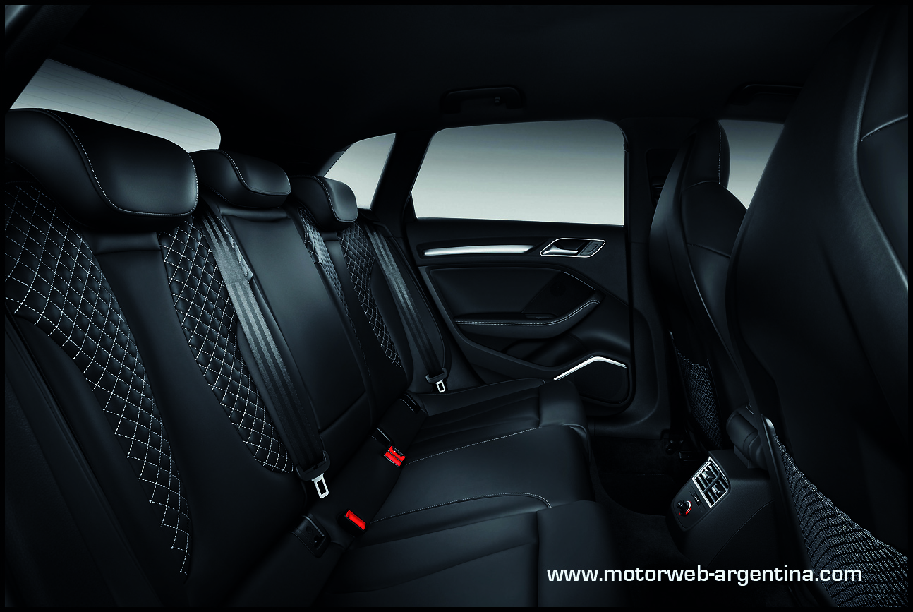 El interior es una continuación del diseño ligero y deportivo del exterior. Un arco independiente rodea el tablero de instrumentos; su forma es delgada y plana, y parece flotar sobre la consola central. Grandes difusores de aire redondos en diseño jet, el elegante panel de mandos del climatizador y las inserciones decorativas de efecto tridimensional aportan el toque de distinción; además, su extraordinario equilibrio en diseño traslada al A3 la calidad de la clase de lujo. Los asientos y los volantes son de nuevo desarrollo, y el manejo es claro e intuitivo, como en todo Audi. El volumen del baúl es de 365 litros.