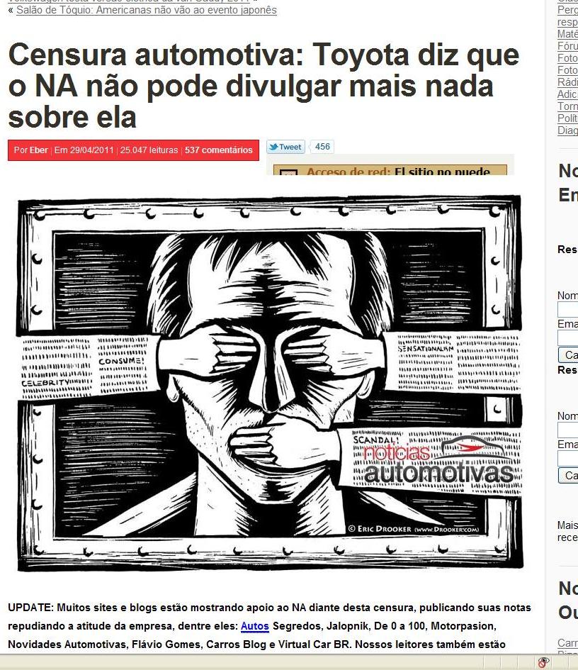 Qué falta de cintura «politica» por parte de Toyta de Brasil el llegar a esta situación….. vaya desde aqui nuestro humilde apoyo a Eber do Carmo, editor del sitio Noticias Automotivas.