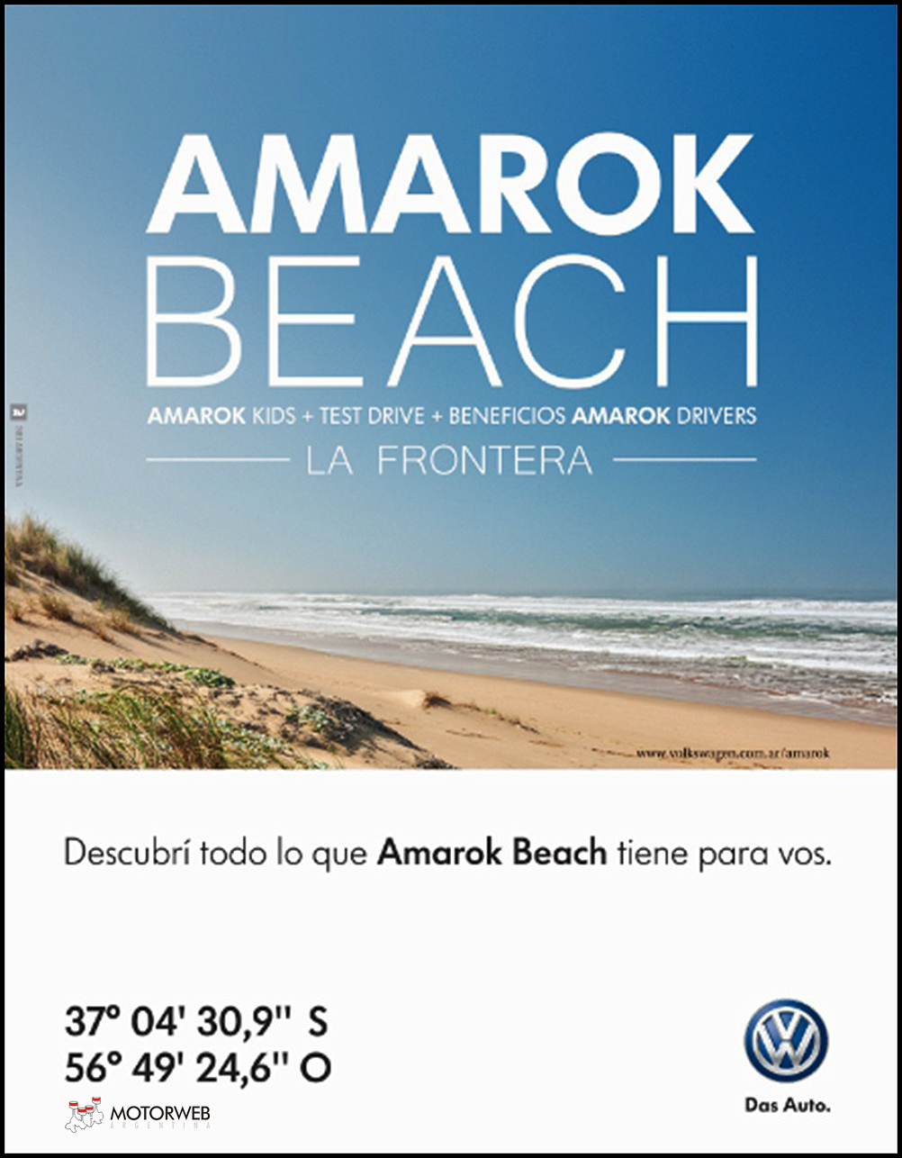 El exclusivo parador AMAROK BEACH contará con dos unidades en exhibición, la Amarok Dark Label y la versión Highline Pack, y la posibilidad de realizar una aventurada prueba de manejo por las dunas arriba de la exitosa pick-up de fabricación nacional. Quienes concurran con hijos pequeños, podrán también disfrutar del Amarok Kids, un lugar especialmente diseñado para que los chicos jueguen y se entretengan con distintas actividades. Además, los poseedores de Amarok podrán gozar del beneficio de un 20% de descuento presentando la cédula verde. Ventajas y beneficios que un usuario de Amarok debe tener. Las actividades estarán disponibles desde el 2 de enero hasta el 15 de febrero, de 11 a 19 h.