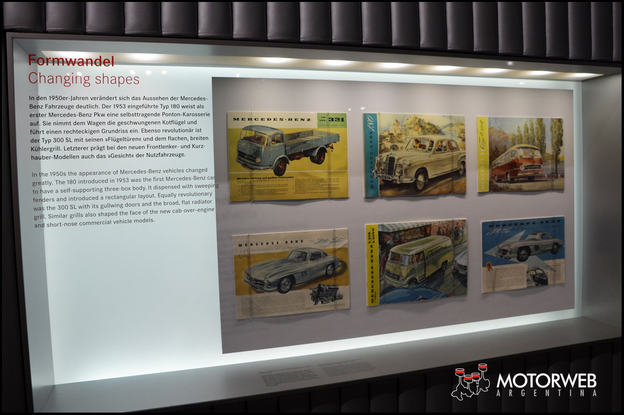 Luego pasamos por otras salas de exposición que muestran variados ejemplares de lo que Mercedes denominó «Ayudantes», es decir todos los vehiculos de trabajo que atraviesan tambien la historia de la marca. Ambulancias, bomberos, policía, correos, excavadoras, el archi-famoso Unimog, los «Pace Car» de carreras y tantos usos a los que han servidos los productos de la marca a lo largo de las décadas. Estas aplicaciones de los vehiculos Mercedes nos dan la pauta de la calidad intrínsecas de sus productos, que puede cubrir todo el espectro de necesidades del «invento-automóvil», desde le servicio hasta el lujo. Todo esto queda muy manifestado en el Museo de Stuttgart, que recorre un abanico gigantesco de tipologías que abordó la marca en sus casi 130 años de vida.