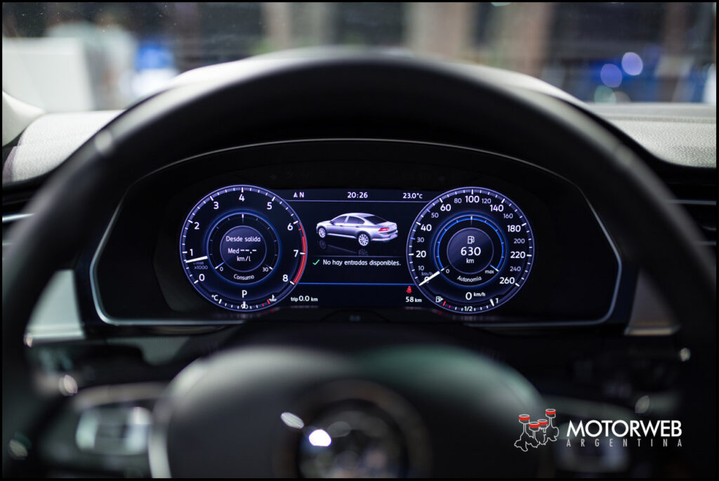 En su interior, el nuevo Passat se destaca por ofrecer un clúster de instrumentos completamente digital denominado “Active Info Display”, además del sistema de navegación touchscreen “Discover Pro” de 8” con AppConnect, con memoria interna de 64 GB y control por voz.