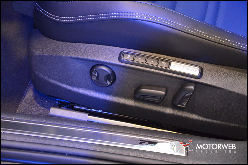 El nuevo Passat ofrece butacas delanteras eléctricas ergoComfort, calefaccionables, que ademas tienen memoria y masajes para la del conductor. Tiene el sistema de estacionamiento Park Assist con ayuda activa Area View, sistema de cierre y arranque sin llave denominado “Keyless Entry/Start”, climatizador de tres zonas con difusores para las plazas traseras, enchufe de 230 voltios y techo solar panorámico con cortina corrediza.