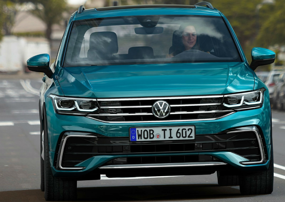 El nuevo Tiguan develado en el viejo continente presenta un frontal completamente nuevo. La nueva parrilla, fluye hacia los faros LED que serán de serie en todos los niveles. Los mismos se emparentan con los de modelos más recientes, como el Golf VIII. A su vez monta la nueva insignia de Volkswagen en formato 2D, acompañadas por un reestilizado paragolpes delantero.