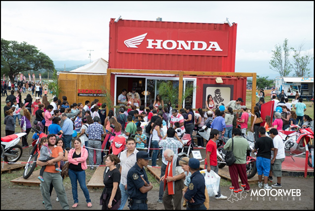 La primera iniciativa tuvo lugar en Rosario, ciudad de largada, con un espacio exclusivo diseñado bajo el original concepto de contenedores apilados, donde se exhibió el line-up completo de motocicletas y los visitantes pudieron conocer la CRF450 Rally, modelo especialmente diseñado para la competencia. El día de descanso de los pilotos y sus equipos, en la provincia de Salta, también fue protagonista. Allí, Honda contó con un espacio exclusivo en el “Dakar Village”, en donde recibió a sus invitados y clientes. Además de interactuar con los diferentes modelos, el público tuvo contacto con los pilotos del equipo y se entregó merchandising de la marca.
