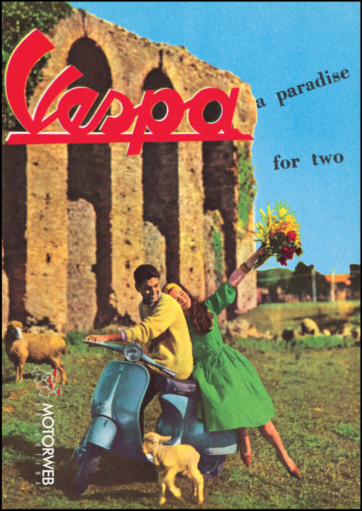 Esta exitosa y particular motocicleta enamoró al mundo, no sólo con sus cualidades indiscutibles, sino también por el glamour que le dio ser protagonista de películas hitos como “La Dulce Vita” (1960), Un Americano en París (1951), Vacaciones en Roma (1953), y así… Pertenecer a esa generación de oro de actores y directores como Audrey Hepburn, Gregory Peck o Federico Fellini, le dieron el sello de motocicleta que todos quisieron y quieren tener, tomándose ese estilo único para toda su vida. Piaggio revolucionó la industria de dos ruedas con la Vespa y produjo un modelo en el que prácticamente todos los demás scooters se han basado desde entonces.