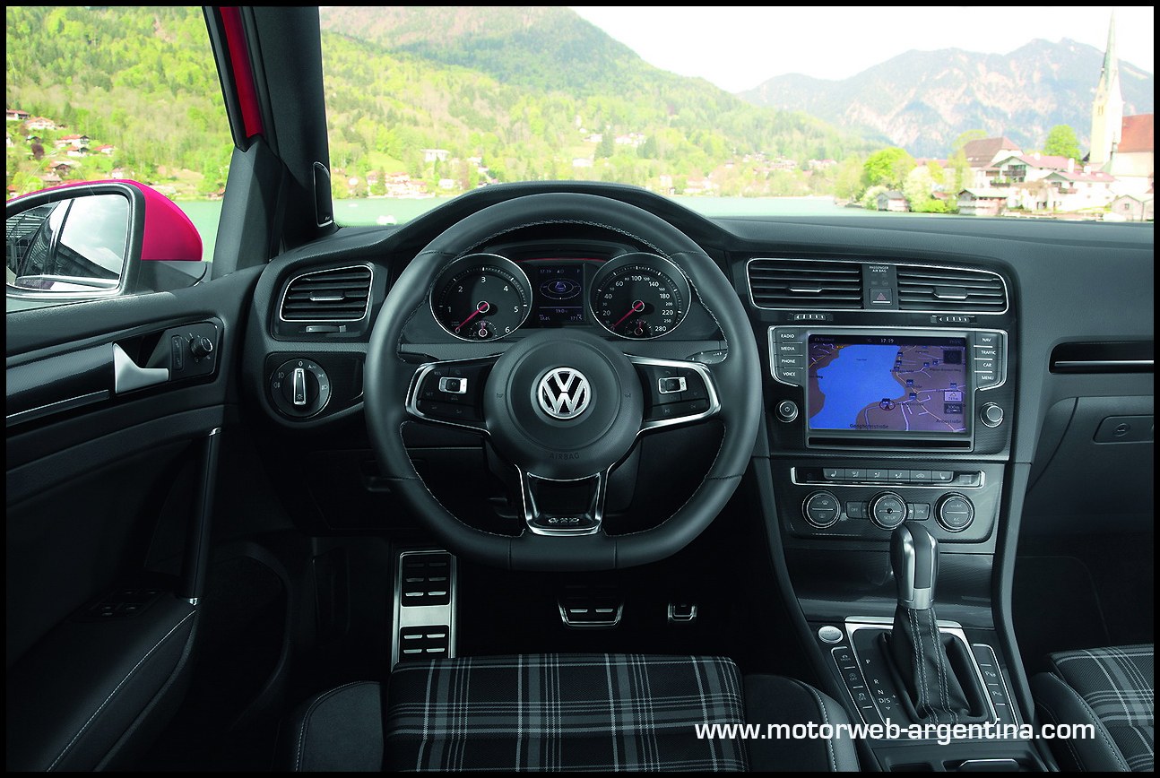 En el interior, el GTD está «ambientado» del mismo modo que la versión GTI. Volante deportivo, butacas de mayor sujeción laterales, insertos decorativos específicos, pedalera metálica destacan un interior orientado a las prestaciones.