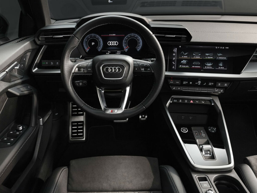 Desde el diseño, hasta las pantallas y los mandos de control, el puesto de conducción del A3 Sedán está completamente enfocado en el conductor. Por ello, la pantalla central MMI touch sobre la plancha está ligeramente inclinada hacia él. Es de 10,1 pulgadas y, por encima, aparece una de las salidas de aire de la climatización, exclusiva para quien esté al mando.