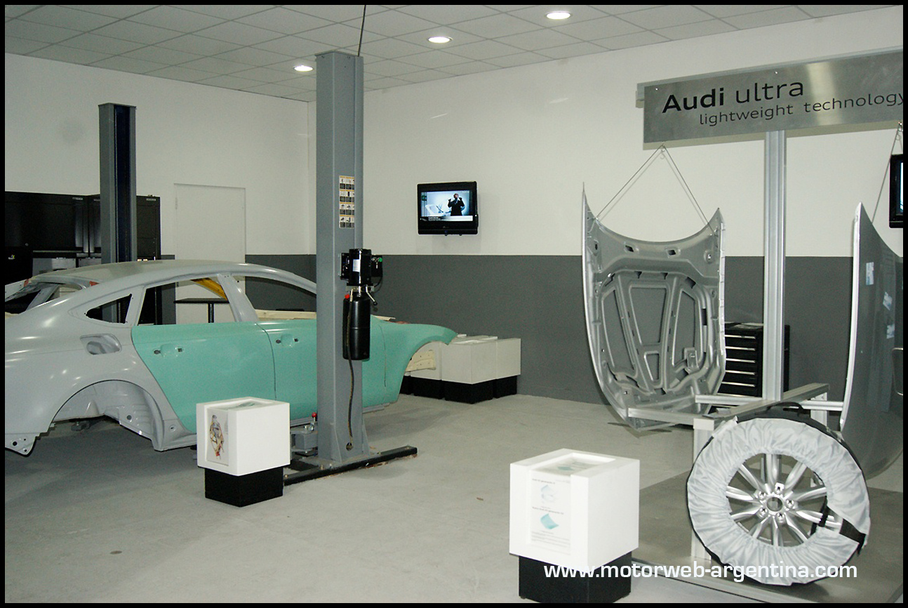 También en Audi Top Service se pueden observar los avances de la marca respecto a tecnologías de fabricación. Por ejemplo, se exhibe como la tecnología Audi ultra busca la combinación inteligente de diversos materiales conservando la rigidez estructural y la máxima seguridad del vehículo, alivianándolo con el fin de conseguir una mejor performance y relación de consumo. Mediante la exposición de dos capots de Audi A3 -uno de II generación y otro de nueva generación- se comprueba la nueva conformación y la considerable diferencia de peso entre ambos. También, en una carrocería de Audi A7 se pueden observar diferentes colores en sus partes móviles y fijas mostrando así los diferentes materiales aplicados.