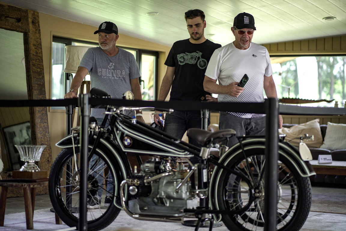 Una vez realizada la acreditación, los diversos asistentes pudieron encontrarse con la exposición de algunos modelos icónicos de la marca, que fueron aportados por distintos fanáticos de BMW Motorrad. Dicha exhibición abarcó una increíble unidad en perfecto estado de la BMW R 32, la moto de 1923 diseñada por Max Friz con motor bóxer y transmisión cardánica que dio inicio a la marca hace 100 años. También se lució una BMW R 80 G/S Paris-Dakar, modelo que hacía alusión a la victoria de Hubert Auriol junto a BMW en la famosa prueba de rally, y otros dos modelos clásicos de la tradicional línea Gelände/Straße: una BMW R 100 GS de 1981 y un BMW R 1150 GS Adventure de 2003.