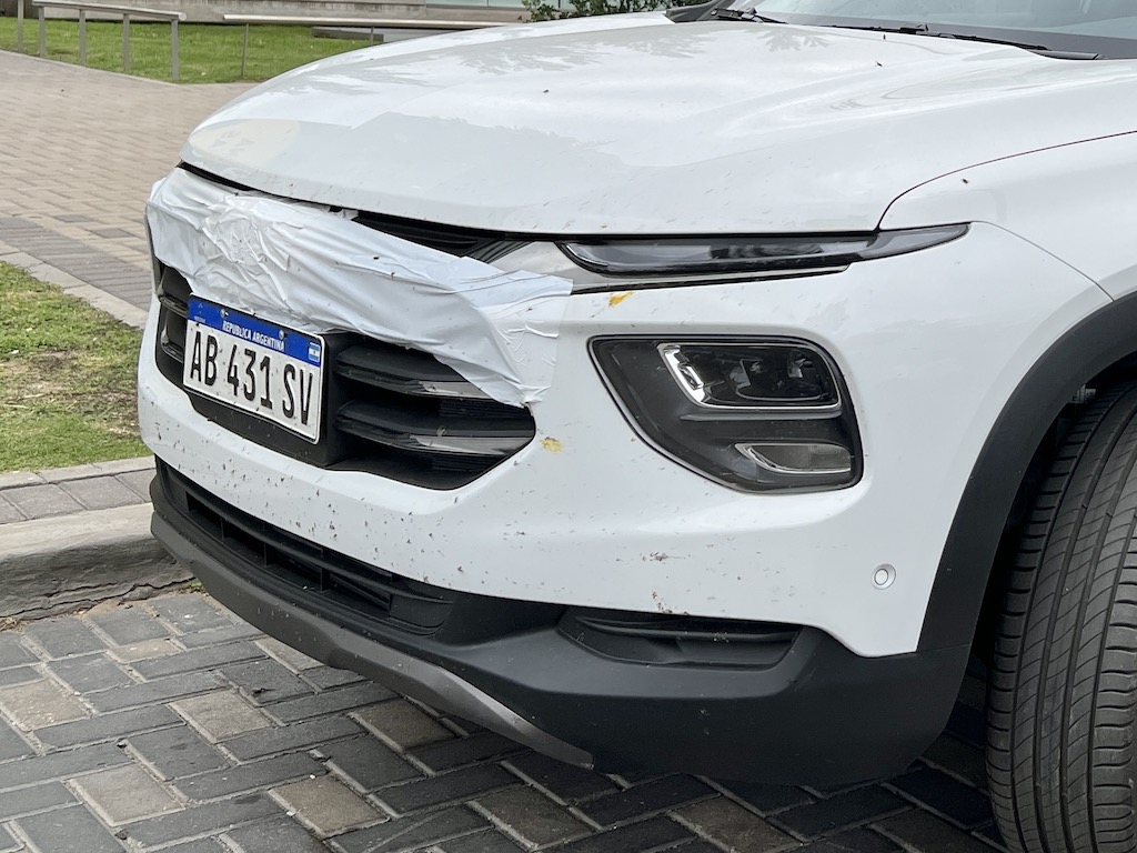 Sin embargo, General Motors todavía continúa con el largo striptease que la caracterizó. Esta unidad estaba estacionada frente a un edificio de la Avenida Caseros, en las inmediaciones del Alto Rosario Shopping. Solo conservaba un leve camuflaje en versión, logos e insignias. Y cintas negras en faros, vidrios y llantas por el mismo motivo.