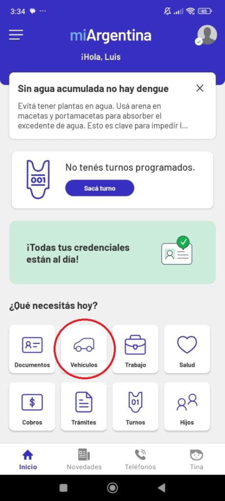 Desde la semana pasada ya es posible «habilitar a conducir» a un tercero. La tarea se lleva a cabo mediante la aplicación Mi Argentina, y demora tan solo unos minutos. En este caso, lo primero que se debe hacer desde la cuenta del titular del vehículo es acceder al menú «Vehículos».