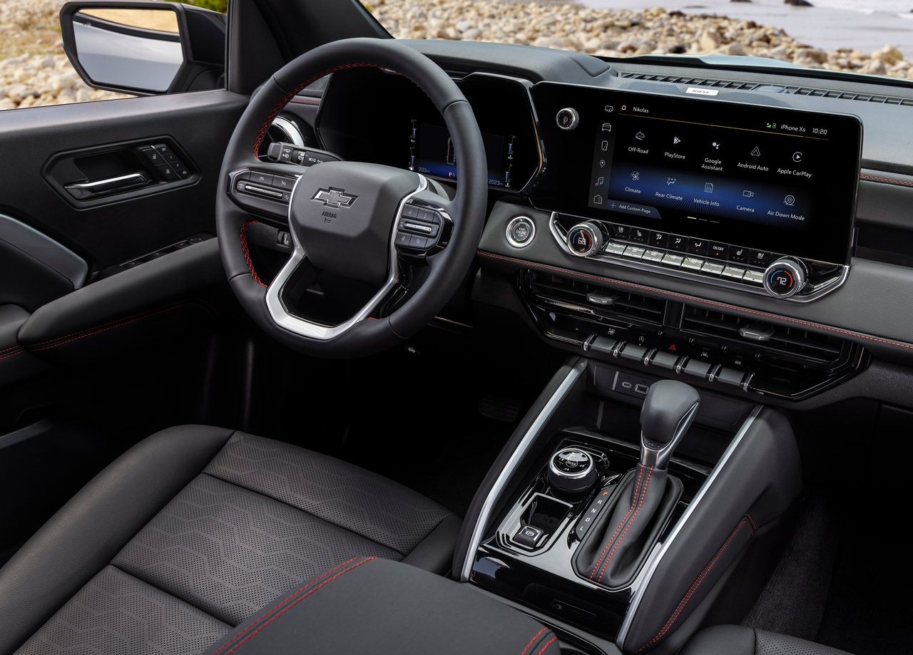 La Colorado 2023 estará disponible con cuatro configuraciones de equipamiento, y ofrecerá como máximo exponente una pantalla táctil de 11,3 pulgadas, acompañada por una pantalla de instrumentos a color totalmente digital de serie de 8 pulgadas, siendo así el primero modelo de este segmento en montar una tecnología semejante como equipamiento de serie.