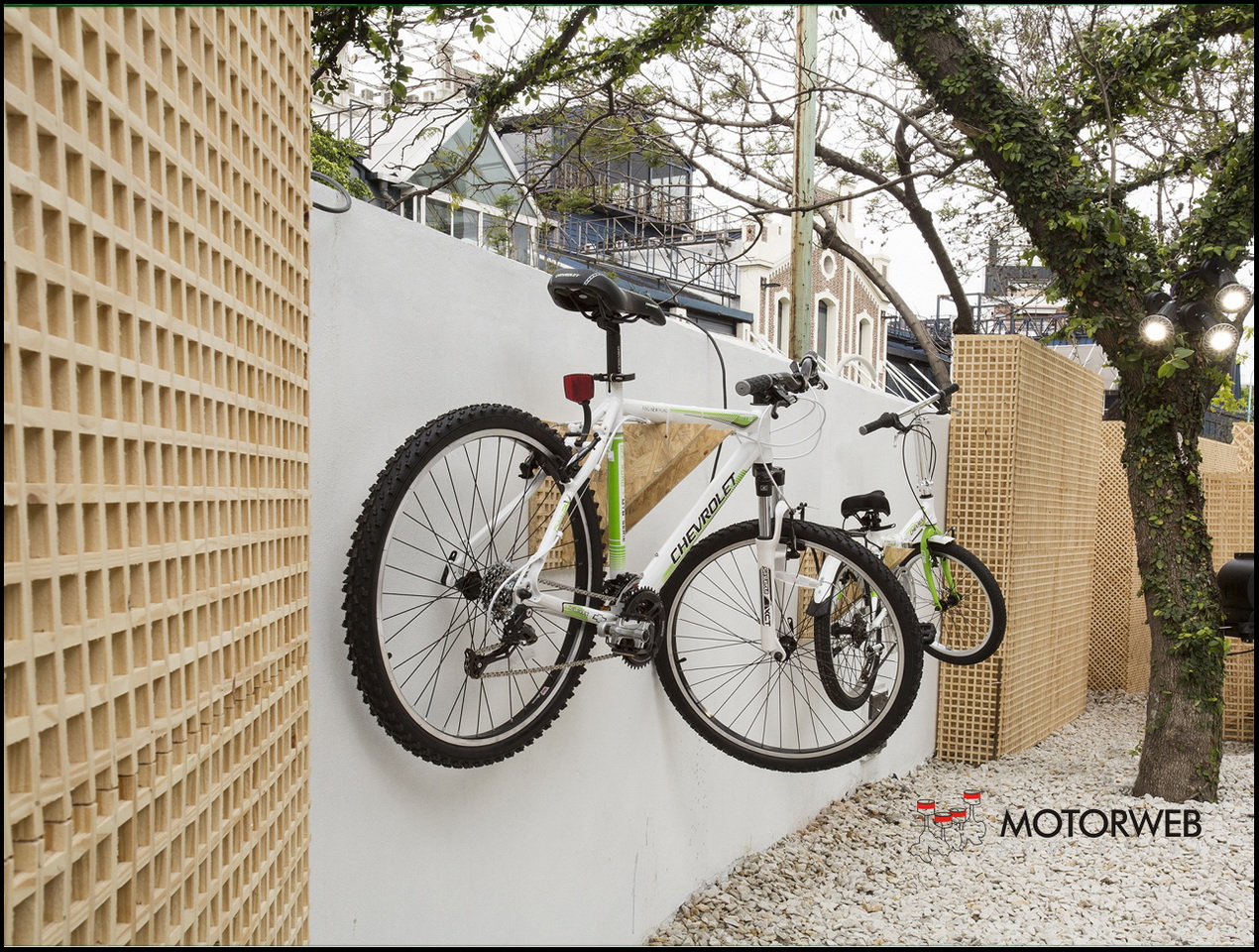 “Este jardín fue diseñado para poder contener e interactuar con los tres vehículos blancos de Chevrolet y tiene la particularidad que respetamos las sensaciones, estética, sensibilidad, ecodiseño que captamos al momento de verlos, construyendo un marco que nos inspire magia y nos haga soñar en un mundo de cómic con esculturas del artista Ernesto Arellano, que nos despierte los sentidos a través de la madera que te envuelve y relaja” comenta Zacarías Otiñano en su memoria descriptiva.