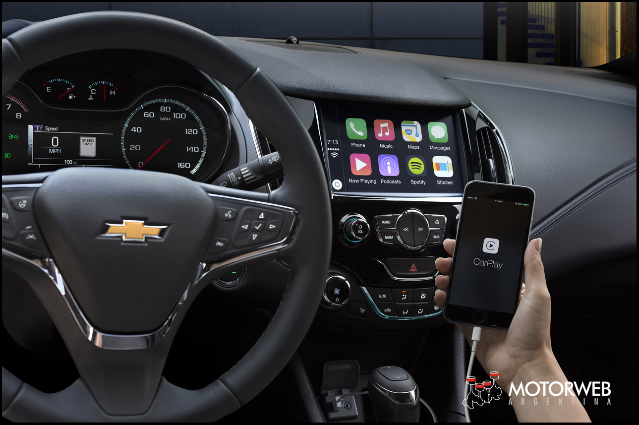 Entre los contenidos tecnológicos, el Nuevo Cruze 2016 ofrecerá una nueva generacion del sistema MyLink, con mejorada integración para smartphones, incluyendo una pantalla táctil de 7″ y 8″ pulgadas según versión. Incluirán los sistemas Apple CarPlay y AndroidAuto, que permiten manejar con ordenes verbales variadas aplicaciones de nuestros teléfonos, sin distraernos de la conducción. Ademas, en Estados Unidos al menos, e nuevo Cruze podría equiparse con conexión del tipo 4G LTE, que permite utilizar el auto como «Hot Spot» para proveer Internet via wi-fi a los pasajeros.