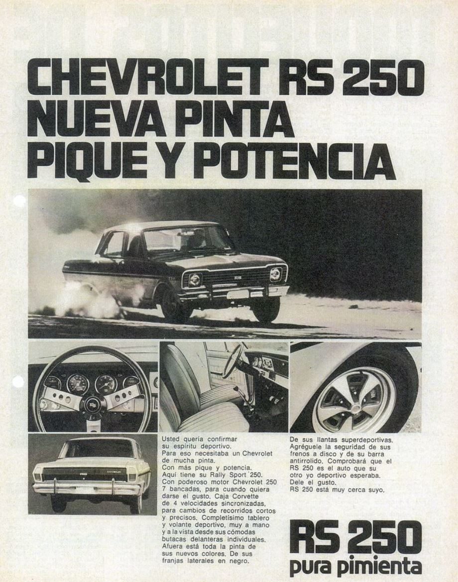 Además su exterior parecía incluso despojado de ornamentación: las llantas por ejemplo no ofrecían siquiera tazas embellecedoras, algo por demás común en aquellos años. Para la última serie, GM mejoró algo de su equipamiento y la estética del Rally Sport, al que le añadió llantas deportivas, franjas laterales o hasta incluso la posibilidad de equipar el motor «250».