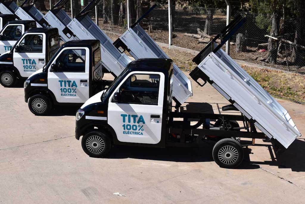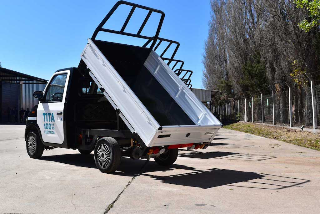 La pick-up Tita es un utilitario urbano, impulsado por un motor eléctrico. Cuenta con una caja volcadora con una capacidad de carga de hasta 500 kg. Y tiene un chasis de acero y su carrocería es íntegramente de chapa.