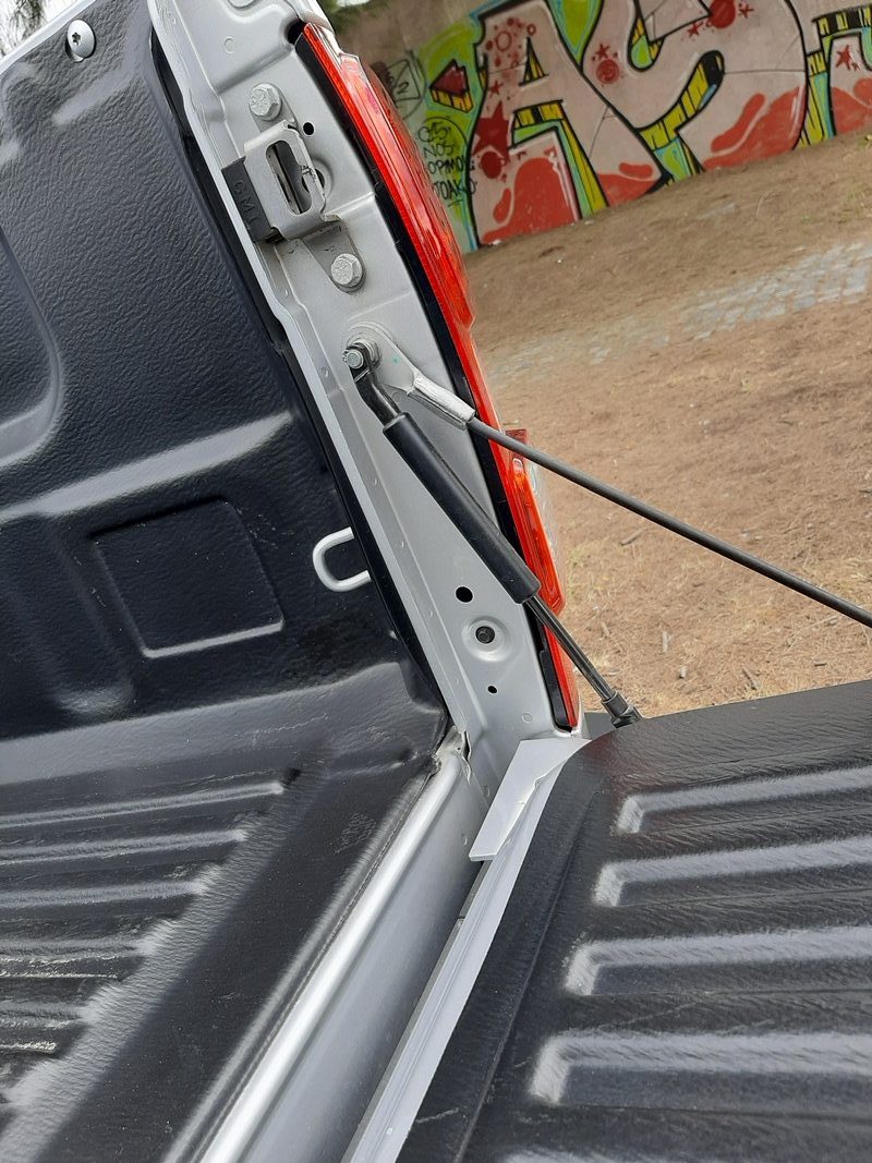 Otros cambios que introdujo la S10 recientemente fue la incorporación de amortiguadores en el portón de caja de carga, un sistema que no es común en otras chatas. En este caso se adaptó un amortiguador, que suaviza la apertura pero que no aliviana la operación a la hora de cerrar, como sí lo hacen algunos rivales, provistos con una pequeña barra de torsión metálica.