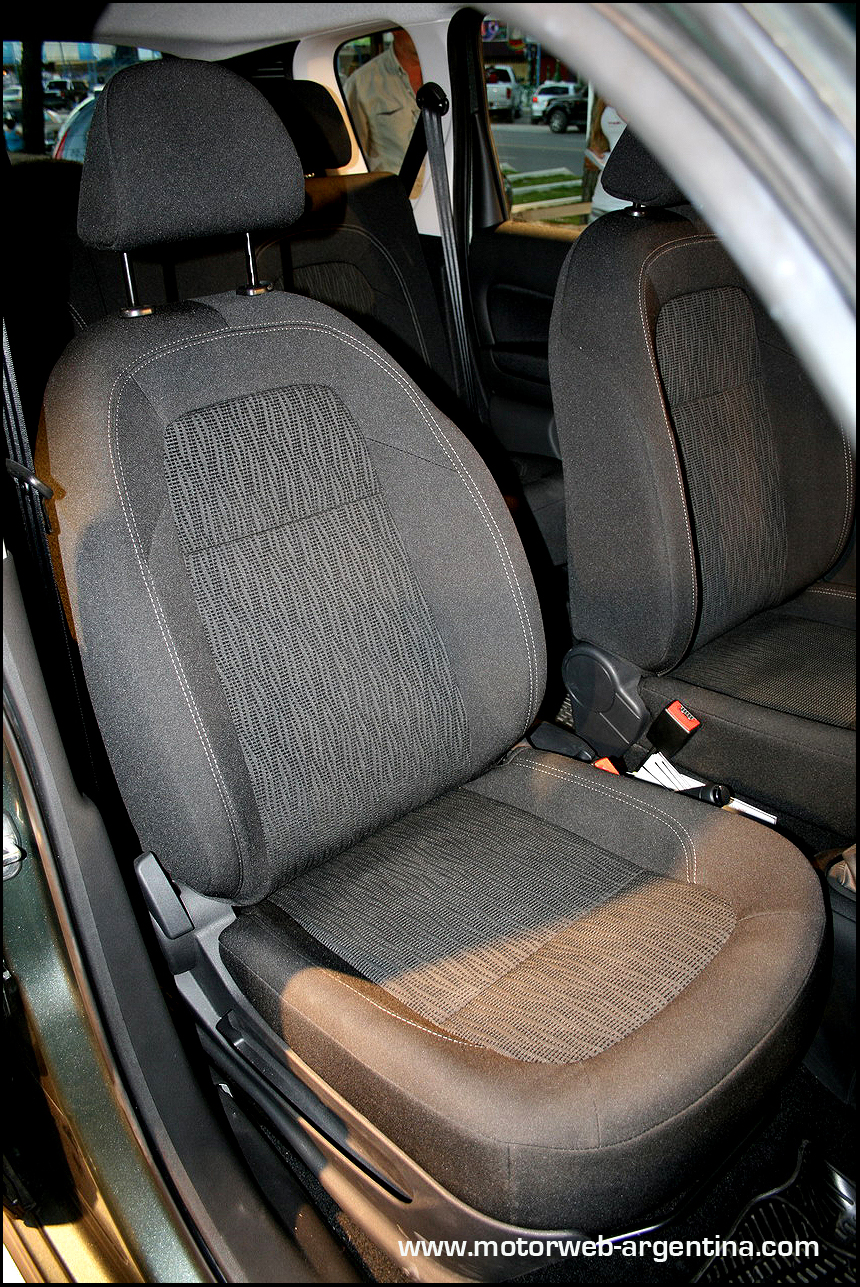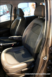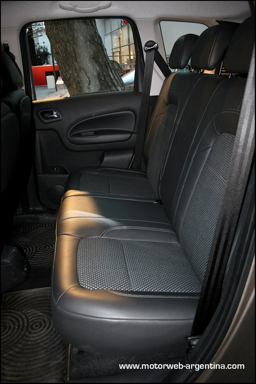 La posición de manejo es elevada y con una cierta angulación entre volante/conductor más cercana a la de un utilitario que la de un auto familiar. Las butacas son cómodas y en la versión “Exclusive Techno”, que es la que manejamos, tienen un tapizado muy atractivo, parcialmente en cuero y textil, con pespuntes contrastantes que le dan un muy buen toque de sofisticación al interior.