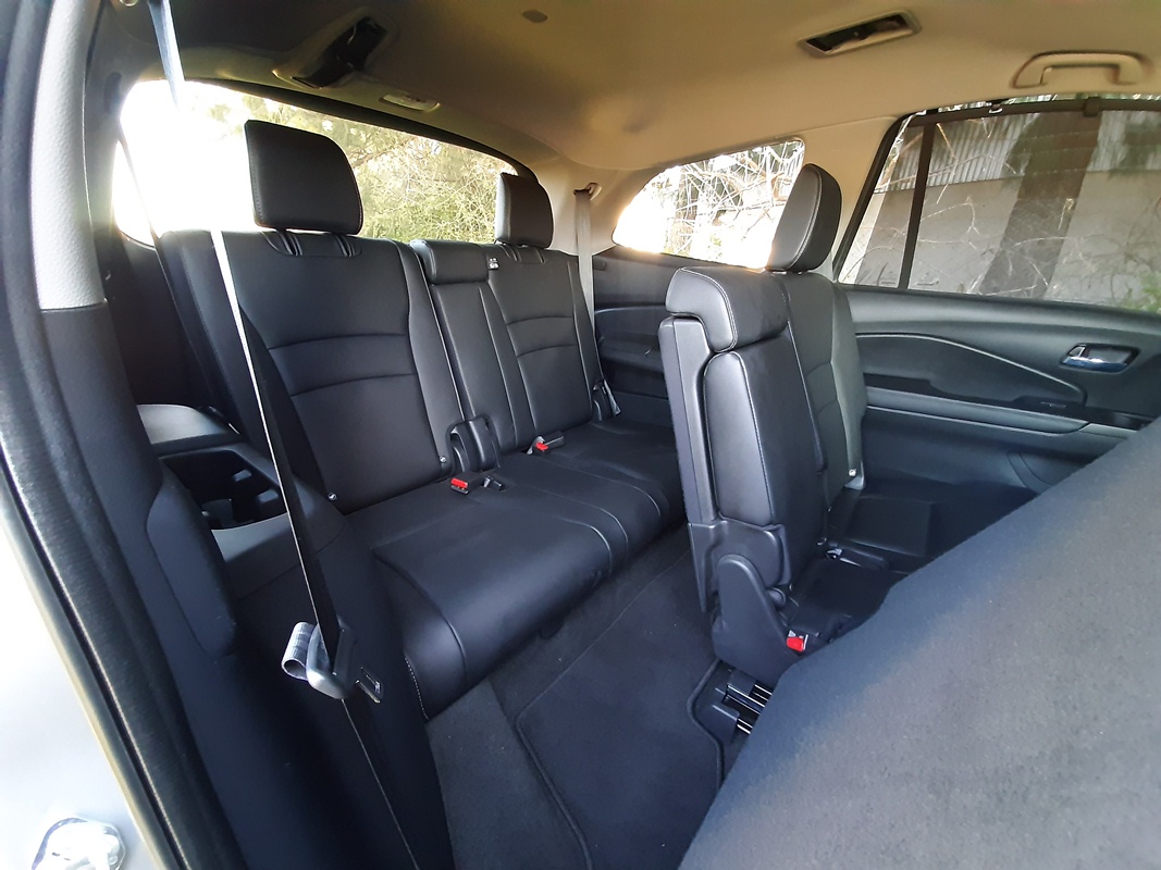 La contra es que en la última fila la plaza central resulta muy chica, pero al menos tiene cinturón de seguridad y apoyacabezas. Claro que aprovechando las tres filas, el espacio de carga resultará reducido, y es algo que debe pagarse en este tipo de vehículos. Rebatir cada asiento además resulta muy sencillo y práctico, pudiendo convertir a la Pilot en un amplio espacio para llevar objetos varios.