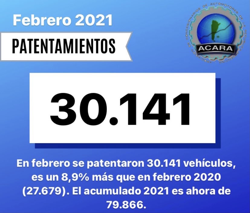 “Esta suba del 8,9% % por encima del febrero pre pandemia, es también el resultado del esfuerzo compartido de los concesionarios, que estamos acompañando con asesoramiento y atención personalizada a una clientela demandante, pero también de las fábricas, que vienen aumentando el abastecimiento de vehículos”, agregó el directivo.