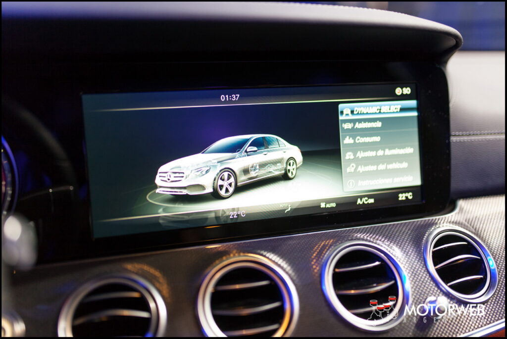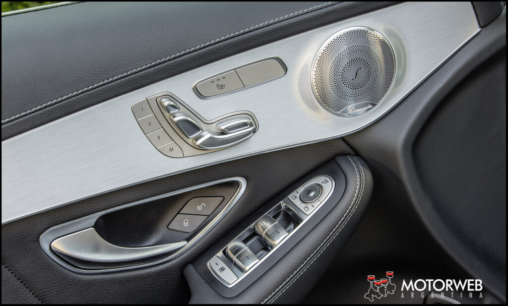También ofrece retrovisores con antideslumbramiento automático y abatibles eléctricamente, techo de vidrio corredizo, «LED Intelligent Light System» con luces automáticas, ayuda activa para estacionar + PARKTRONIC con cámara de 360º, asientos delanteros con regulación eléctrica y memorias, calefaccionados y con apoyo lumbar de 4 posiciones, tapizados en simil-cuero ARTICO, volante multifunción, sistema KEYLESS GO con portón trasero EASY-PACK, sistema multimedia COMAND DVD con navegador y Media interface, climatizador automático THERMATIC de dos zonas, paquete de alumbrado y visibilidad, paquete Antirrobo, sistema HEAD-UP Display, y los sistemas de asistencia a la conducción y seguridad ATTENTION ASSIST, ADAPTIVE BRAKE, ABS, BAS, ESP y ASR. Además cuenta con 7 airbags.