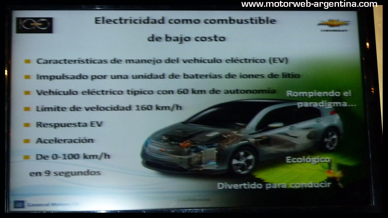 General Motors de Argentina ofreció a la prensa un seminario sobre Electrificación de Vehículos. El evento giró alrededor de la presentación del VOLT, el modelo «electrico de rango extendido», tal y como lo clasifica la marca, que será una de las vedettes del próximo Salón del Automóvil, para el cual ya faltan solamente un par de semanas. La charla, conducida por el carismático Ing. Sergio Rocha, Presidente y Director Ejecutivo de GMA y Paulo Riedel, el Ingeniero a cargo de la División Powertrain de GM Latinoamerica, responsable de todos los temas motorísticos en la región, tuvo como eje la explicación del cómo, el pórque del Volt, y la eleccion de esa tecnología.