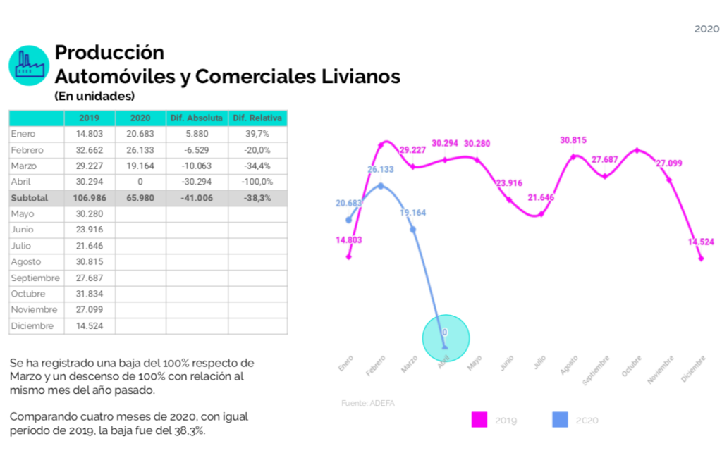 Ayer, Adefa informó que la producción local en abril fue cero. Ninguna unidad fabricada en Argentina. La caída cuatrimestral orilla el 40% y una situación todavía peor se ve en las exportaciones y ventas mayoristas.