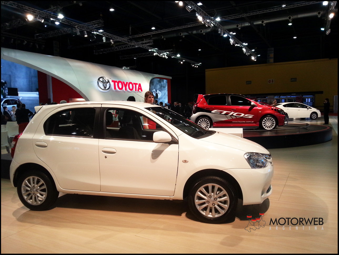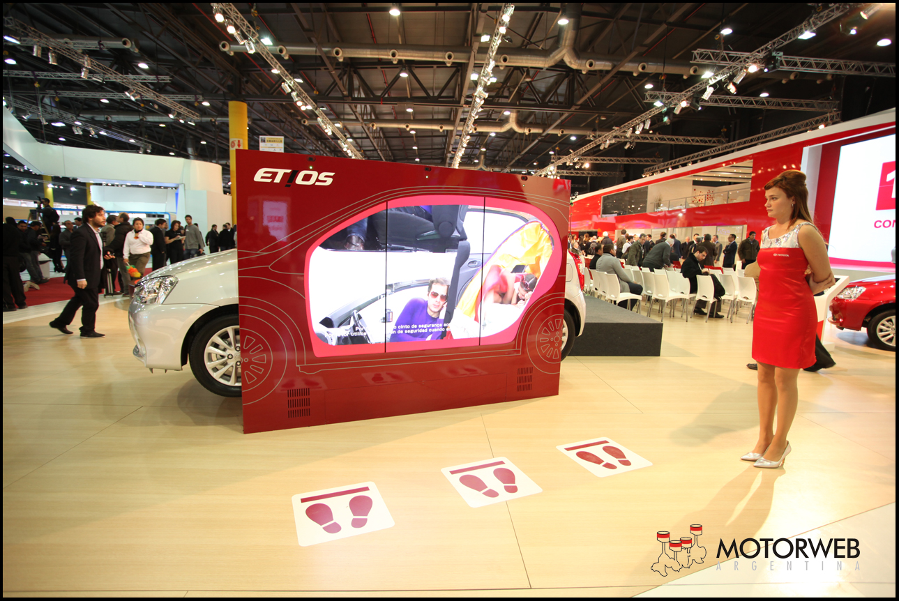 A modo de adelanto, Toyota exhibe el Etios, vehículo con el que realizará su desembarco en el segmento de los vehículos compactos en Argentina. En sus versiones 4 y 5 puertas, cada una de estas contará con 3 niveles de equipamiento, todas con airbag y ABS de serie. El Etios es la apuesta de Toyota para ingresar en este competitivo segmento, manteniendo siempre los valores centrales de la marca: Calidad, Durabilidad y Confiabilidad, además de una dedicada atención al cliente.